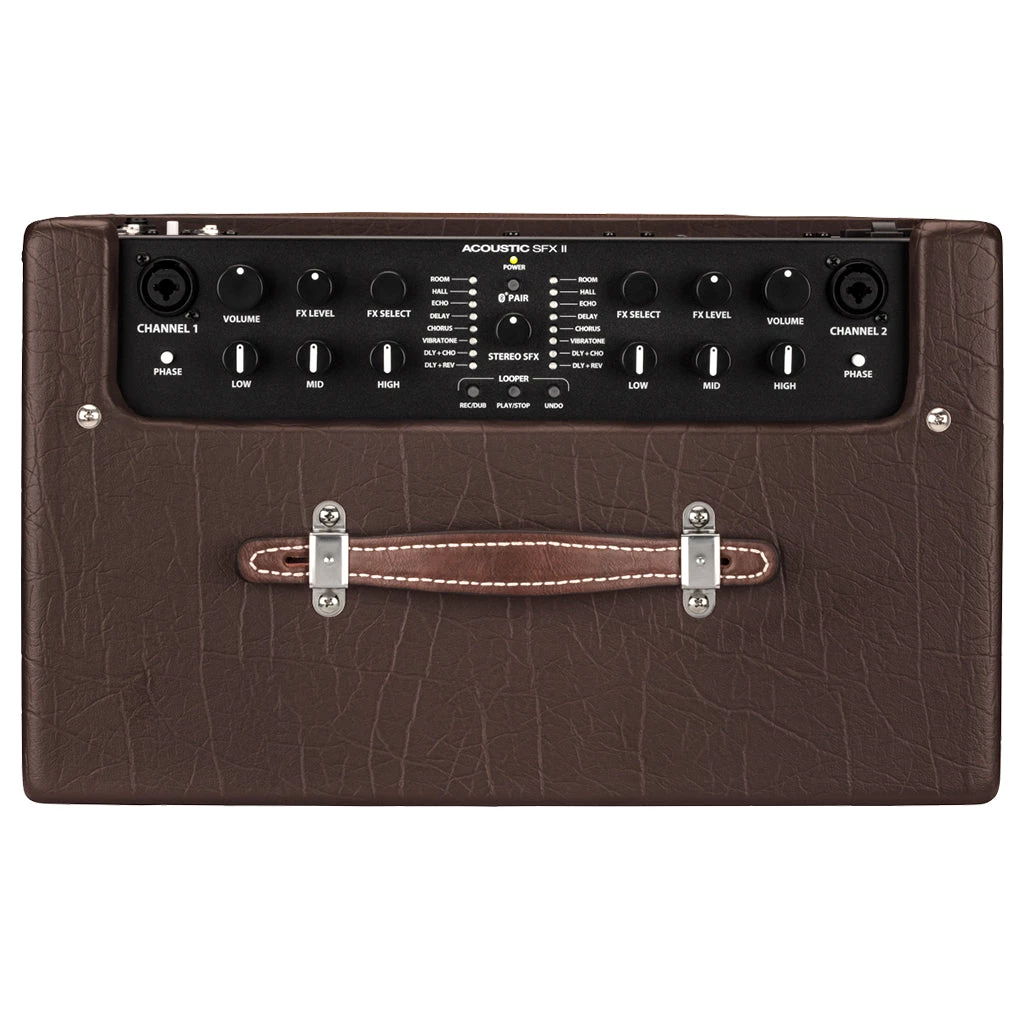 The Acoustic SFX II amplifier delivers best-in-class performance for acoustic guitar and vocals. This powerful, portable system has two channels designed for instrument or microphone use, each with studio-quality effects enhanced by our proprietary Stereo Field Expansion technology for room-filling, more-than-stereo imaging. Bluetooth wireless audio streaming and a 90-second looper make it perfect for solo shows.