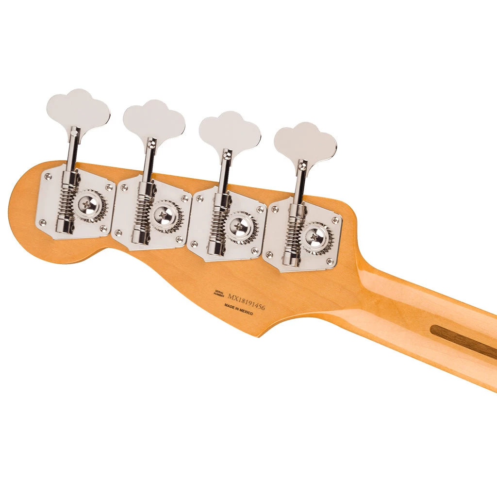 For players who want the style and sound of Fender’s golden era, we created the Vintera ‘50s Precision Bass. Equipped with the coveted features that defined the decade—including period-accurate neck profile and playing feel, along with a re-voiced pickup—this bass has all of the punchy tone that made the P Bass® famous. For authentic, original-era tone we re-voiced the single split-coil P Bass pickup to sound more like the original. Seismic and punchy, it has the tone that made the P Bass one of the most popular electric basses. The “Vintage C”-shaped neck has a 7.25”-radius fingerboard with 20 vintage-style frets for classic playing feel. A vintage-style, 4-saddle bridge with threaded saddles and vintage-style tuning machines provide original-era aesthetics, rock-solid performance and tuning stability. Other features include an anodized aluminum pickguard, chrome hardware and 4-bolt neck plate. Includes a deluxe gig bag.