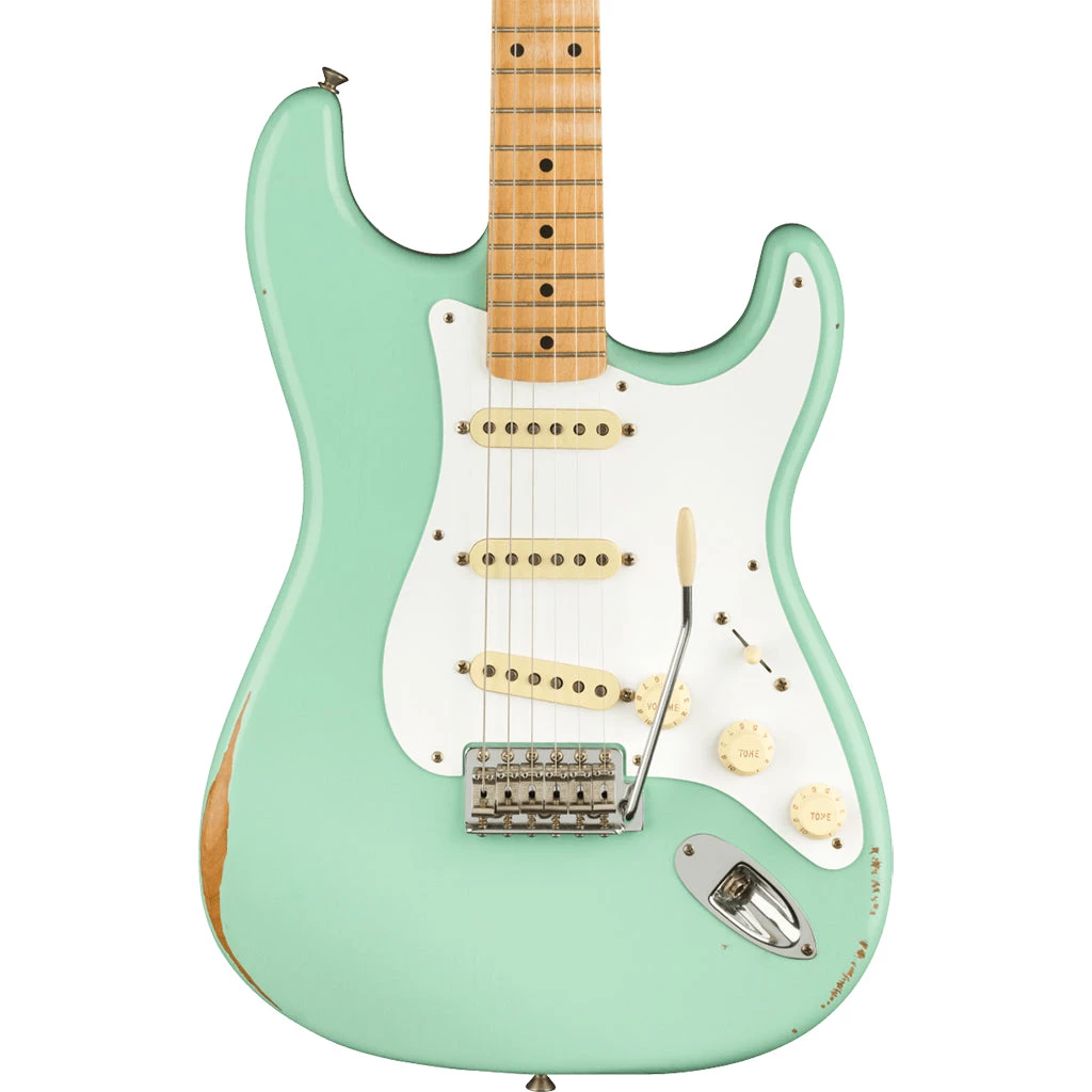 Finished in nitrocellulose lacquer – prized for its natural tonal qualities and distinct aging patterns, then hand-distressed for an authentically broken-in look, this Strat® delivers the bell-like tone and playing comfort you’d expect from a great vintage guitar.