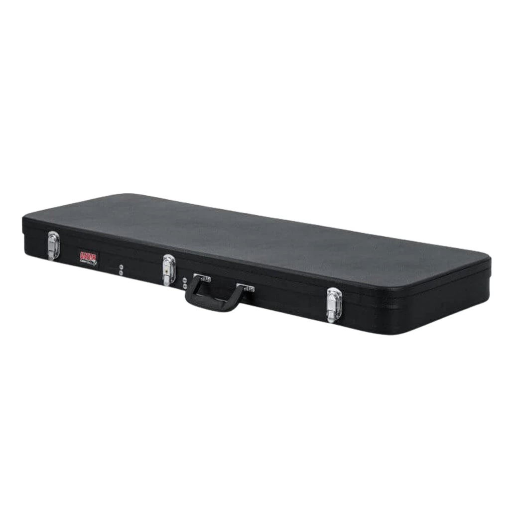 The GWE-ELEC-WIDE Hard-Shell Wood Case for PRS and Wide Body Style Guitars is lightweight, ultra-slim, and designed to protect against the minor bumps and bruises of daily use. Ultra-durable plywood coated in black Tolex PVC forms a moisture-resistant, impact-resistant outer barrier while plush fabric lining keeps your wide body guitar snug. The large interior storage compartment fits everything from straps and tuners to picks and capos. Chrome plated lockable latches form a secure enclosure and the ergonomic carrying handle perfectly balances the case’s weight and gives you a comfy grip on your gear. Keep your wide body electric guitar safe and sound with the Gator GWE-ELEC-WIDE hard-shell wood case.