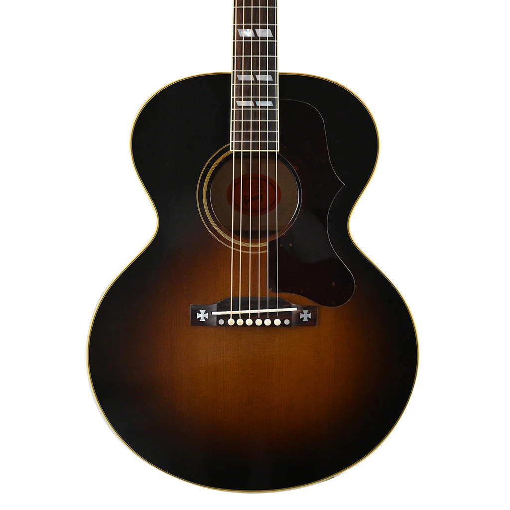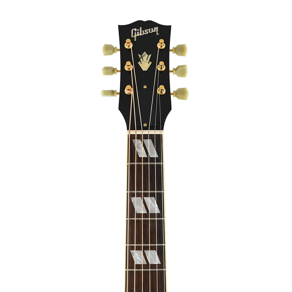 One of the most fabled Gibsons of all time, the J-185 was originally released in 1951. Designed to be just slightly smaller in proportion to the larger SJ-200, the J-185 used similar appointments, Sitka spruce and maple back and sides for its construction. This Custom Historic 1952 J-185 is enhanced with a Thermally Aged Sitka spruce top and gorgeous flame maple back and sides. Sporting classic J-185 appointments including iconic Maltese crosses inlaid in mother-of-pearl on the open slot bridge, this is a rare model, but highly desired by artists and performers worldwide.