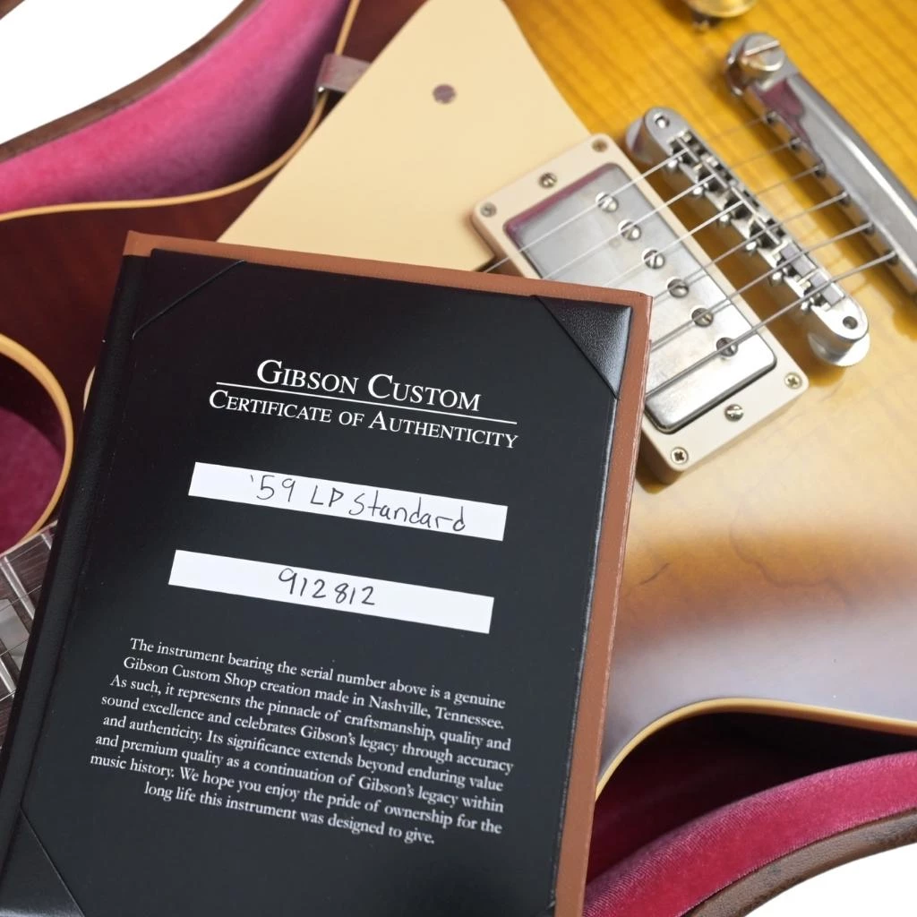Gibson Custom Shop’s 1959 Les Paul Standard Reissue is not just a tribute to the priceless original models — it’s a clone of them. From laser-scanned dimensions to chemically-recreated plastics to color-matched shades of sunburst, every element has been rendered in unbelievable detail. It represents the culmination of decades of work by Custom Shop’s expert team — a tireless quest to bring accuracy and authenticity to the hands of fans. It’s the definition of cool, and it’s the best representation of the 1959 Les Paul Standard since the Gibson Custom Shop began making Historic Reissues over twenty-five years ago.