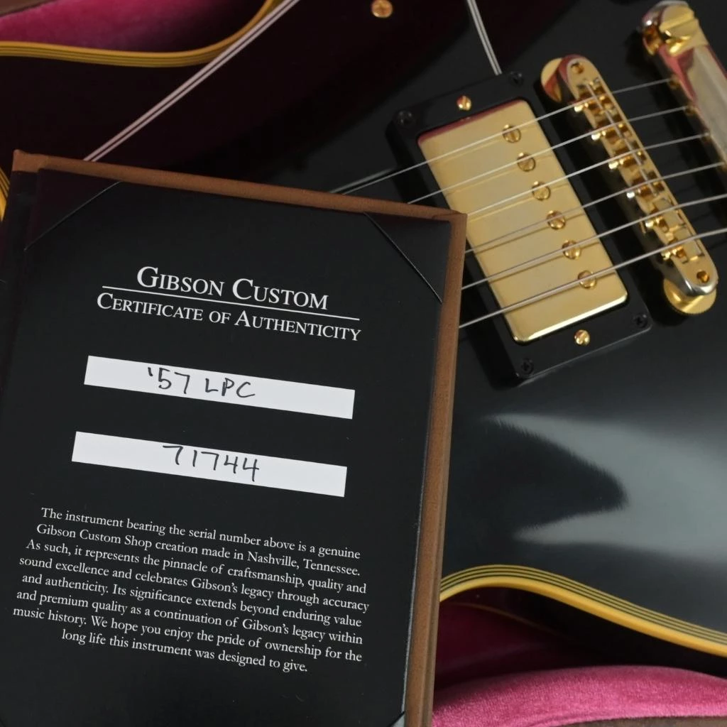 With its elegant lines and Ebony/Pearl/Gold aesthetic, the 1957 Les Paul Custom is easily one of the most iconic and beautiful guitars ever made. It features a body carved out of a single large piece of solid mahogany, unique among Les Paul models. The resulting dark mid-range tone from the body pairs perfectly with its bright-sounding solid Ebony fingerboard. All together, it’s the pinnacle of guitar craftsmanship, design and tone. Gibson Custom Shop is proud to revive every last detail of the original “Black Beauty” for this ’57 Les Paul Custom Reissue, from the dimensions and contours to the precise inlay patterns to the entire ownership experience.