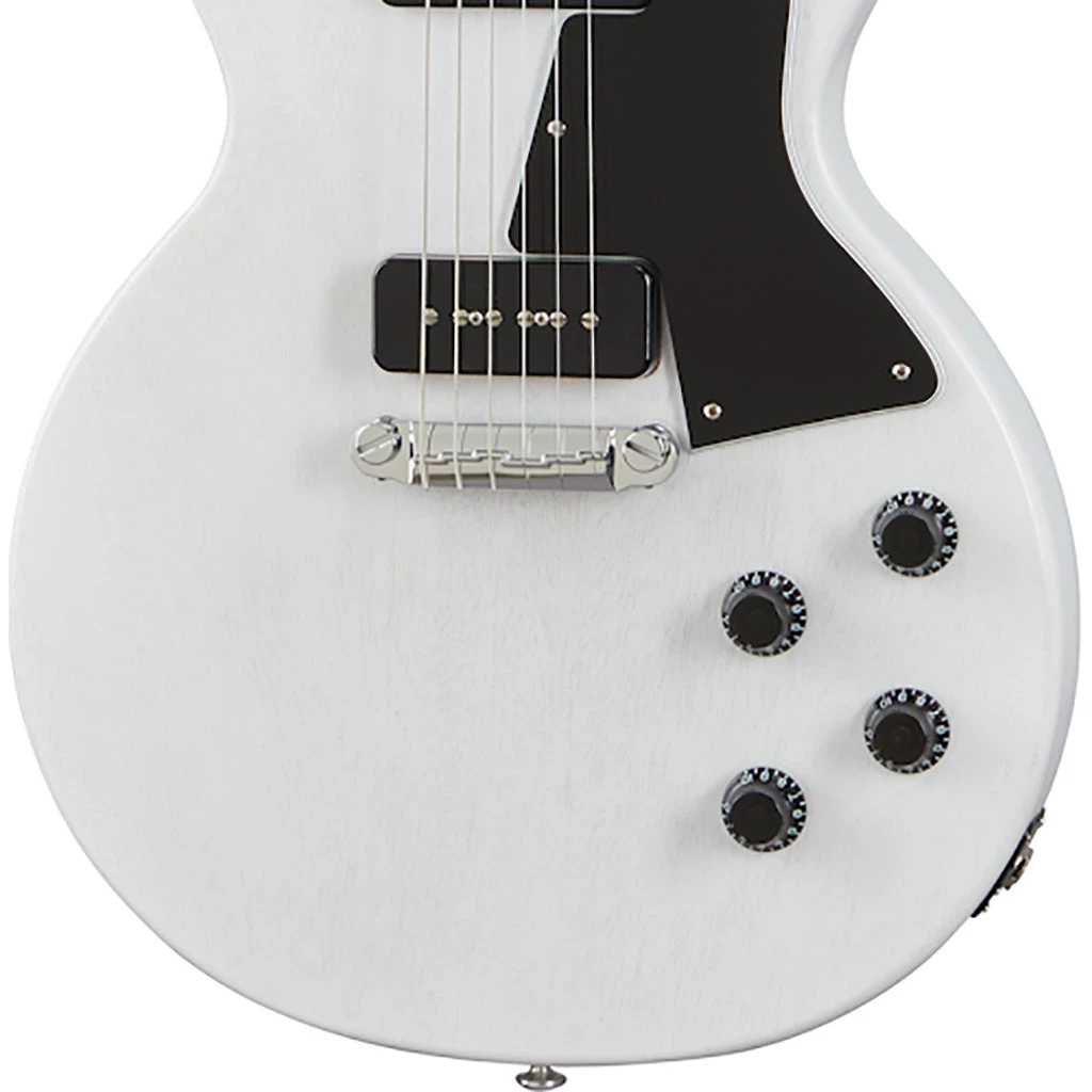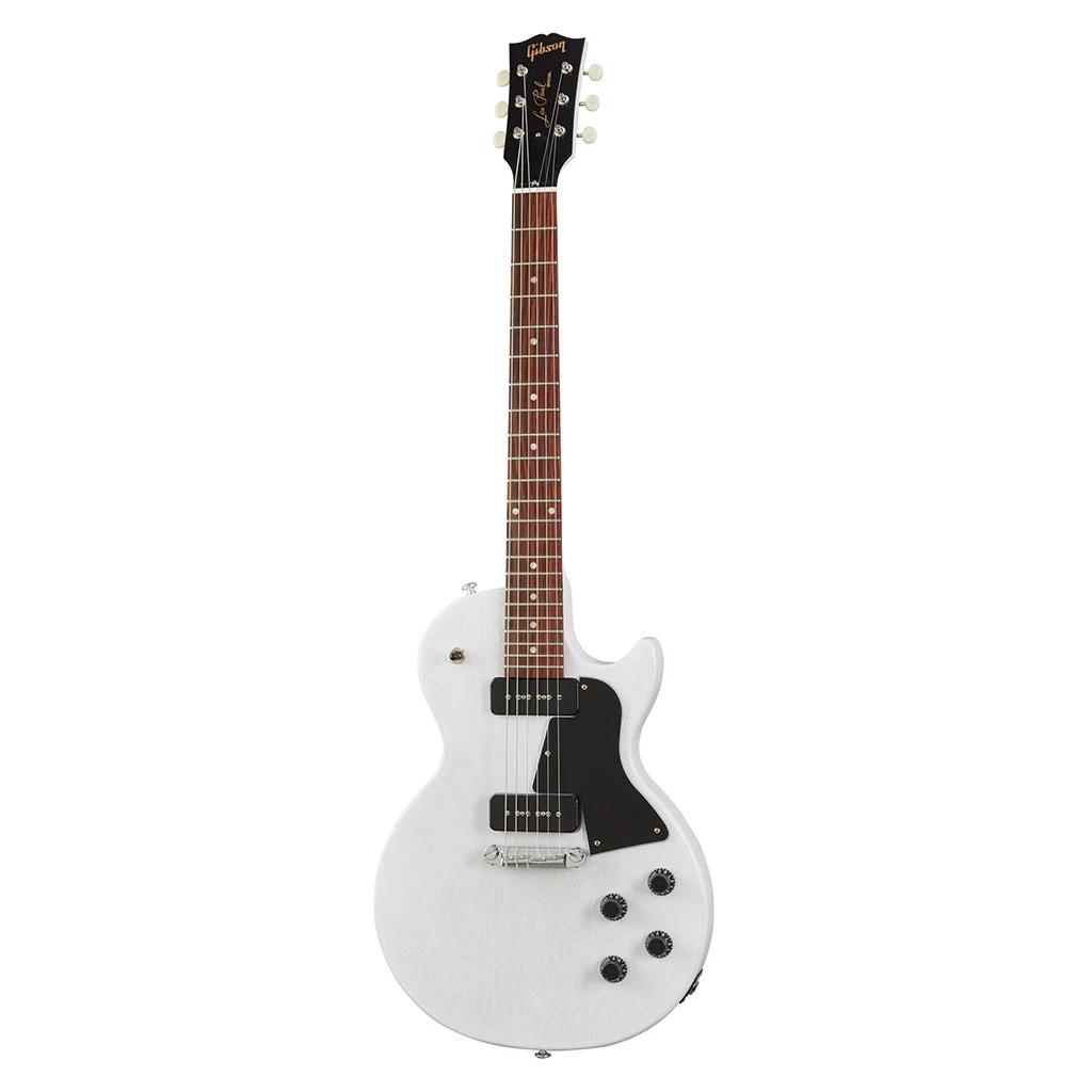 The all-new Gibson Les Paul Special Tribute offers players a new take on a classic design. Time-tested P-90 pickups offer up a roaring tone that is undeniably Gibson. Vintage deluxe white button tuners and a compensated wrap-around tailpiece keep things simple and elegant. Comfort and playability will always be on tap thanks to the Rounded profile maple neck and true rosewood fingerboard. You could say that this one is a sonic special delivery. Available in four distinct satin finishes – Worn White, Vintage Cherry, Ebony, and Natural Walnut.