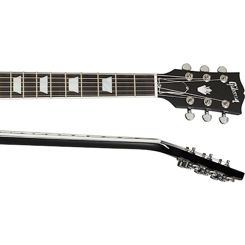 The new Gibson SG Modern incorporates many contemporary updates that players have embraced and it’s much more than a classic “solid guitar”; it’s a hybrid between an SG and a Les Paul. Shaped and scarfed like a classic SG, the body is crafted with a AA maple top and mahogany back, characteristic of a Les Paul. This combination is renowned for its resonance and sustain. The genuine ebony, 24 fret compound radius fingerboard and asymmetrical, slim taper neck allow fast and silky access to the highest frets. A pair of calibrated BurstBucker Pro Alnico V humbuckers deliver fire power and the push-pull controls allows you to switch between the Gibson humbucker and the single coil P90 sounds, both of which have defined so many genres of music across multiple generations since we invented them. Upscale appointments include genuine mother of pearl inlays, Grover locking Rotomatic tuners, and clear top hat knobs.