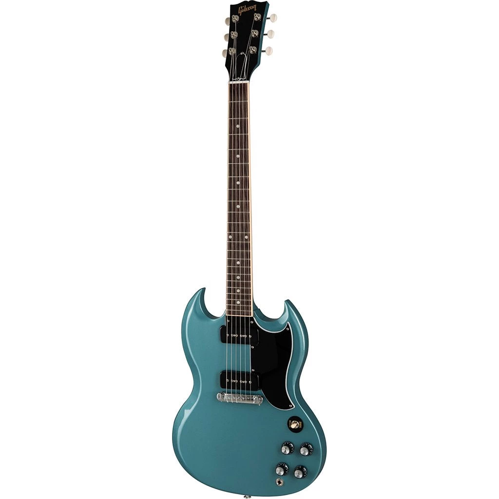 The SG Special returns to the classic design that made it relevant, played and loved — shaping sound across generations and genres of music. This early 60’s style SG Special has the vibe and sound heard on countless classic rock recordings. The comfortable, slim taper mahogany neck and bound rosewood fingerboard is well known for fast, effortless playing. The two P-90 pickups are noted for their fat, snarl when driven and for their smooth, sweetness when played clean. The SG Special is equipped with the 3-way toggle switch, handwired controls and orange drop capacitors.