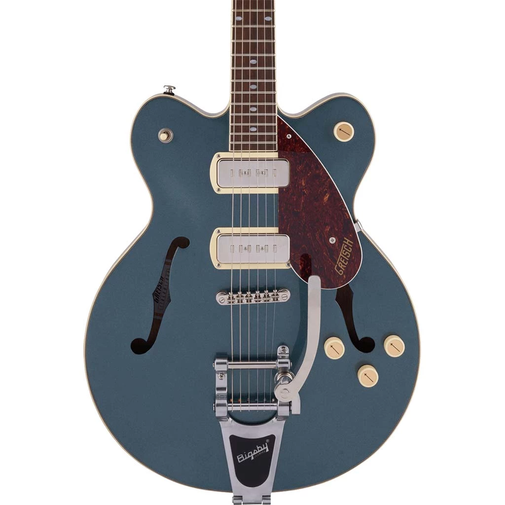 The impressively affordable G2622T-P90 Streamliner™ Center Block Double-Cut P90 with Bigsby® is designed for three simple things — high gain-friendly performance, slick, easy playability and spectacular style.