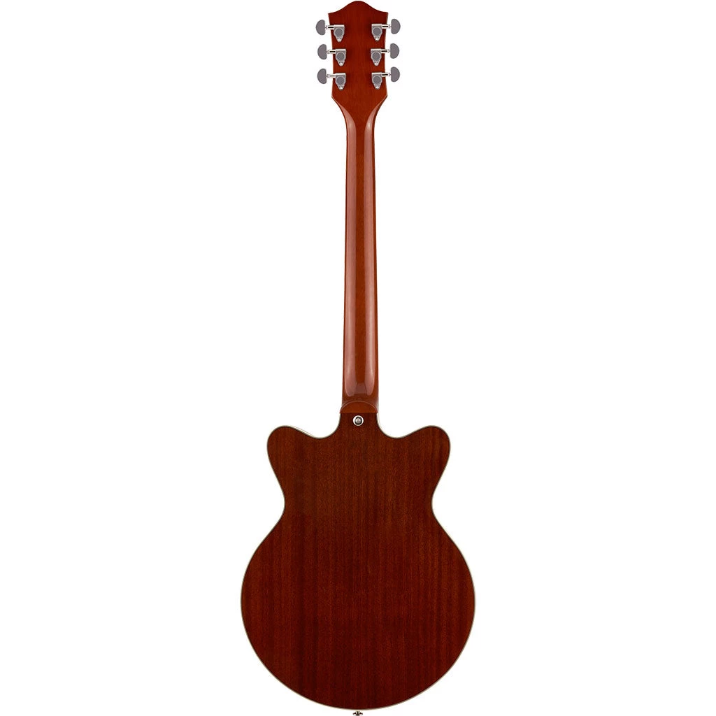 The G2655T-P90’s sound is the perfect blend of brash and brawn with a chambered spruce center block driven to the limit by all-new Gretsch FideliSonic™ 90 pickups. These single-coil 90 pickups retain the full warm tone of a traditional P90 with a distinct top-end that is articulate and well-defined. A lightweight spruce center block runs the length of the mahogany body, reinforcing the arched top while eliminating undesired feedback for volume-friendly performance on modern stages.