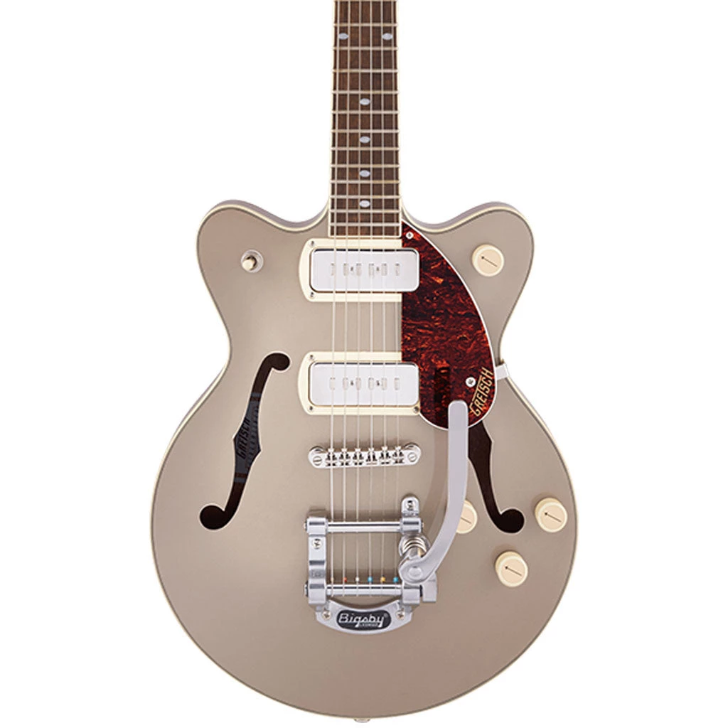 The Streamliner’s sonic power is harnessed and shaped by the traditional control layout—neck and bridge pickup volume controls, a master tone control, master volume control and three-way pickup switching. Add some shimmer and expression to your playing with the Bigsby®-licensed B50 vibrato tailpiece, while the anchored Adjusto-Matic™ bridge and synthetic bone nut grant astounding tuning stability and accurate, slip-free intonation.