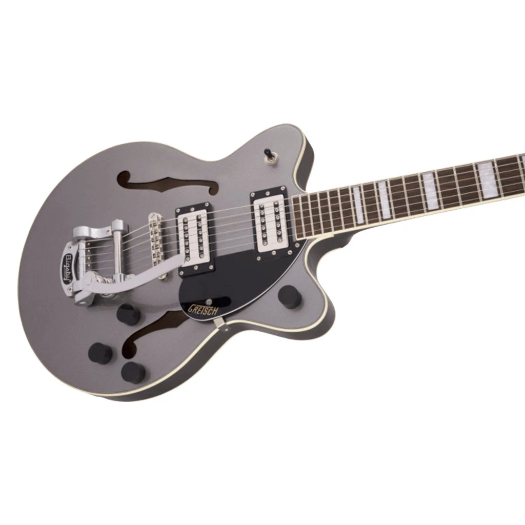 The secret to the Streamliner’s sound is twofold—the Broad’Tron™ BT-2S humbucking pickup and the spruce center block. Designed specifically for the Streamliner Collection, the high-output Broad’Tron pickup spawns improved definition with tighter bass response for robust lows, pristine highs and a throaty midrange. A lightweight spruce center block runs the length of the body, reinforcing the top while eliminating undesirable feedback for volume-friendly performance on modern stages. The Streamliner’s sonic power is harnessed and shaped by the traditional control layout—neck and bridge pickup volume controls, a master tone control, master volume control and three-way pickup switching. A fast-playing 12”-radius laurel fingerboard with elegant pearloid Big Block inlays and 22 medium jumbo frets sits atop the white-bound nato neck with a thin “U”-shaped profile—ideal for chord work or fiery riffing. Enjoy rock-solid tuning stability courtesy of the stylish Gretsch V-Stoptail tailpiece, anchored Adjusto-Matic™ bridge and synthetic bone nut.