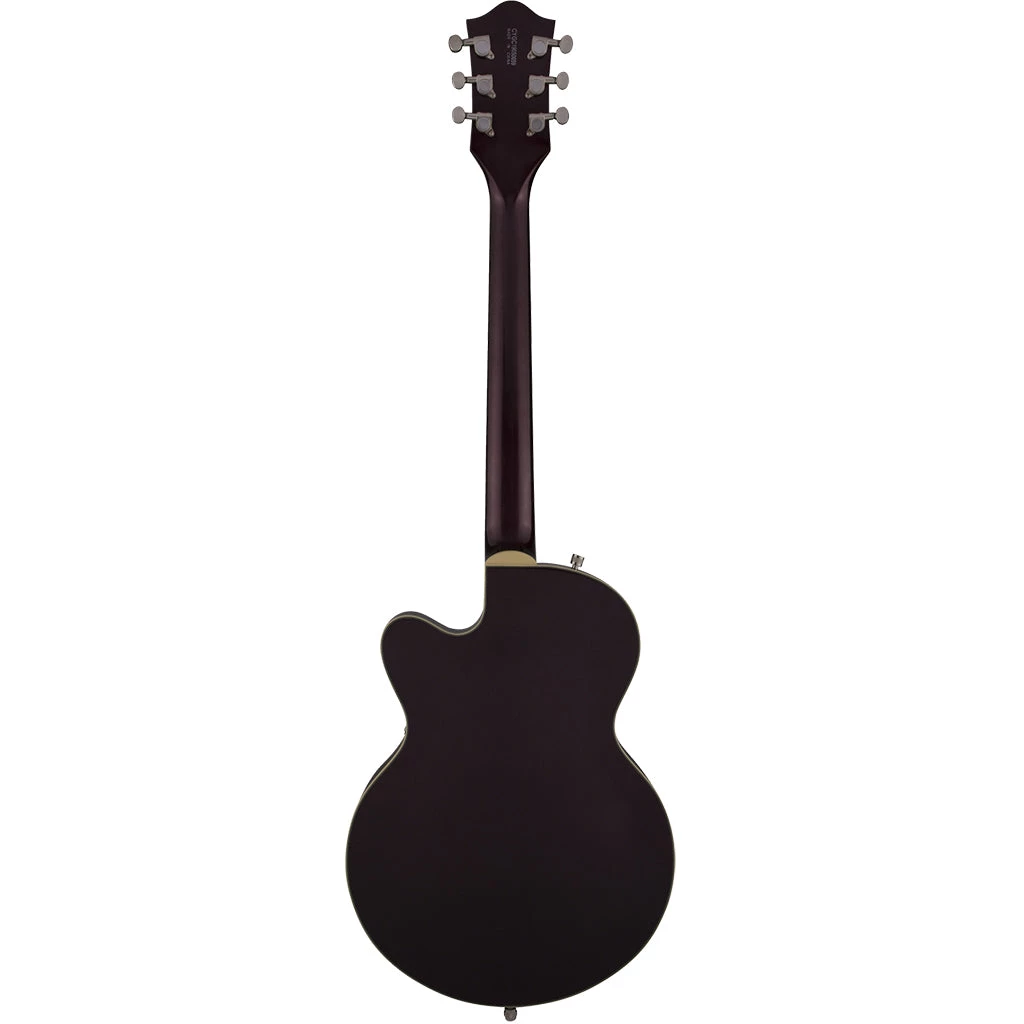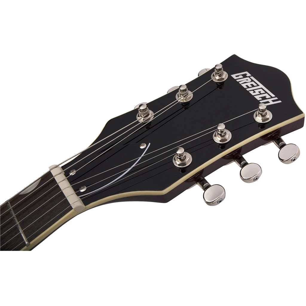 The G5655T Electromatic Center Block Jr. Single-Cut with Bigsby® features a smaller-sized body with a chambered spruce center block for dynamic resonance, high gain power and lightweight comfort. A lower set maple neck offers effortless access and performance, while the 12”-radius laurel fingerboard with 22 medium jumbo frets and Neo-Classic™ thumbnail inlays offers excellent playability.