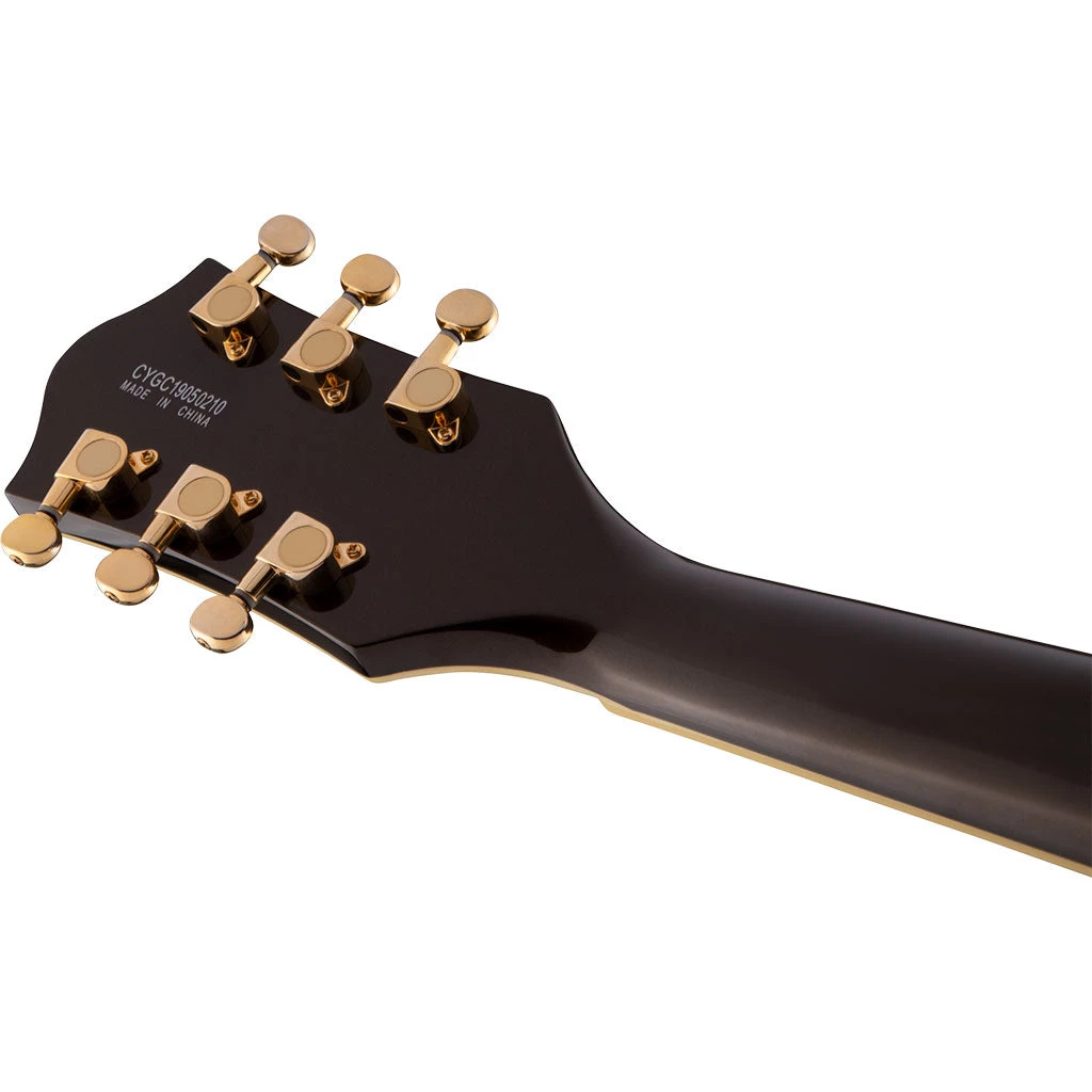 The G5655TG Electromatic® Center Block Jr. Single-Cut with Bigsby® and Gold Hardware features a smaller-sized body with a chambered spruce center block for dynamic resonance, high gain power and lightweight comfort.