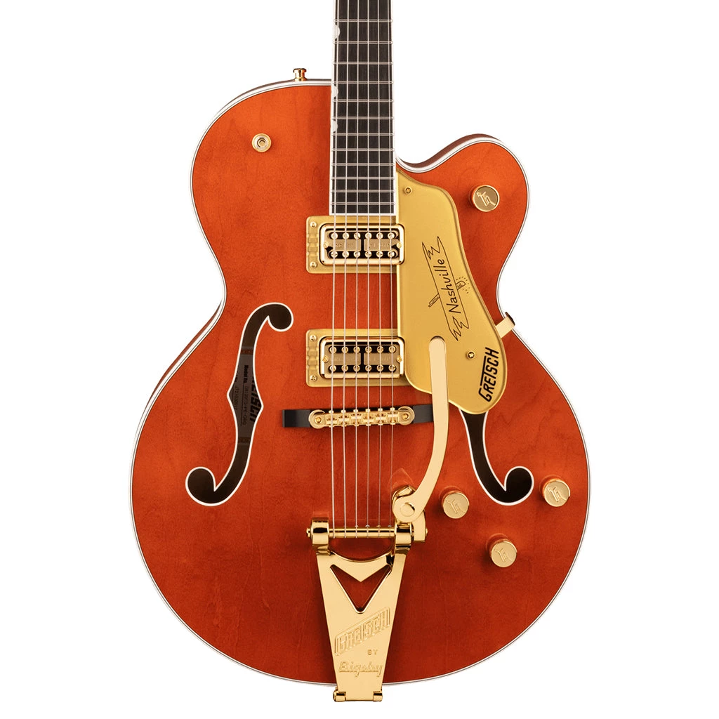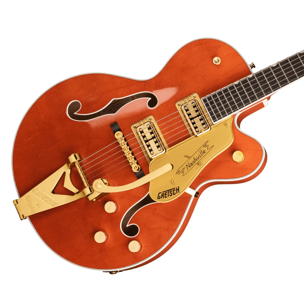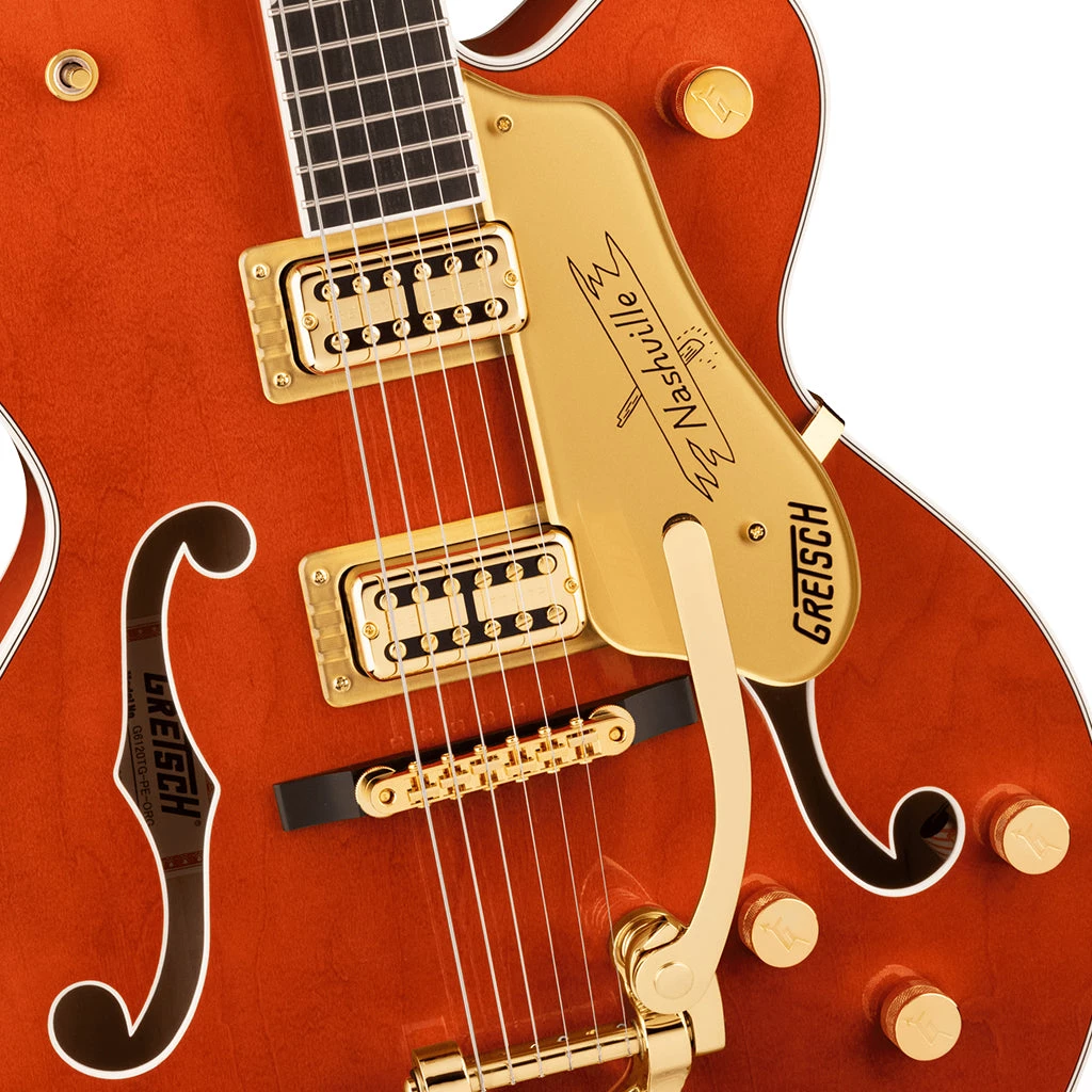 The world’s greatest hollow body guitars just got even better. Designed from the ground up for modern players yet retaining all the timeless sound and style that made the 6120 famous, the G6120TG Players Edition Nashville® Hollow Body with String-Thru Bigsby® and Gold Hardware is a perfect pairing of art and performance. Player-oriented features, wide-open sound and comfortable playability combine to create a playing experience like no other. Ideal for every song, every night, this Nashville is certain to become your go-to trusted guitar.