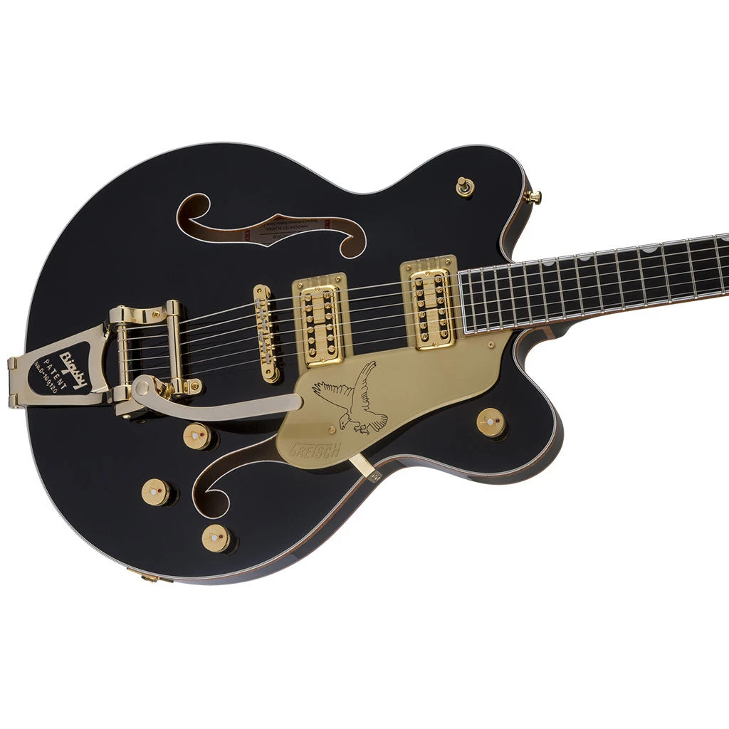The G6636T Players Edition Falcon™ Center Block Double-Cut with String-Thru Bigsby® is an innovative new version of the venerable Falcon, with a slightly smaller 16” double-cutaway body and a chambered spruce center block that enhances body resonance for more organic tone and comfortably lighter weight. Built to perform, it rocks dual High Sensitive Filter’Tron™ pickups for authentic Gretsch power and articulation, and a host of other classic Falcon design elements.