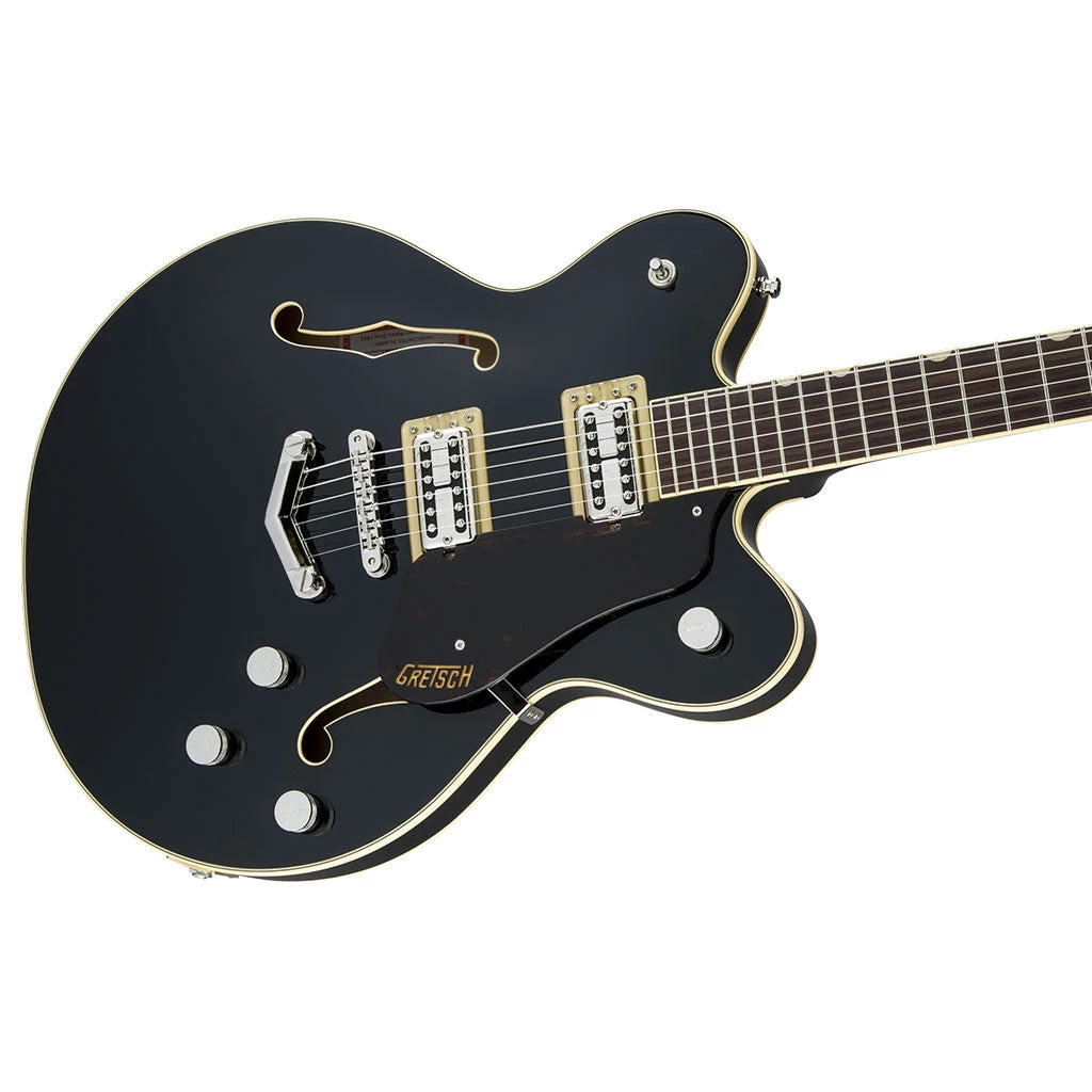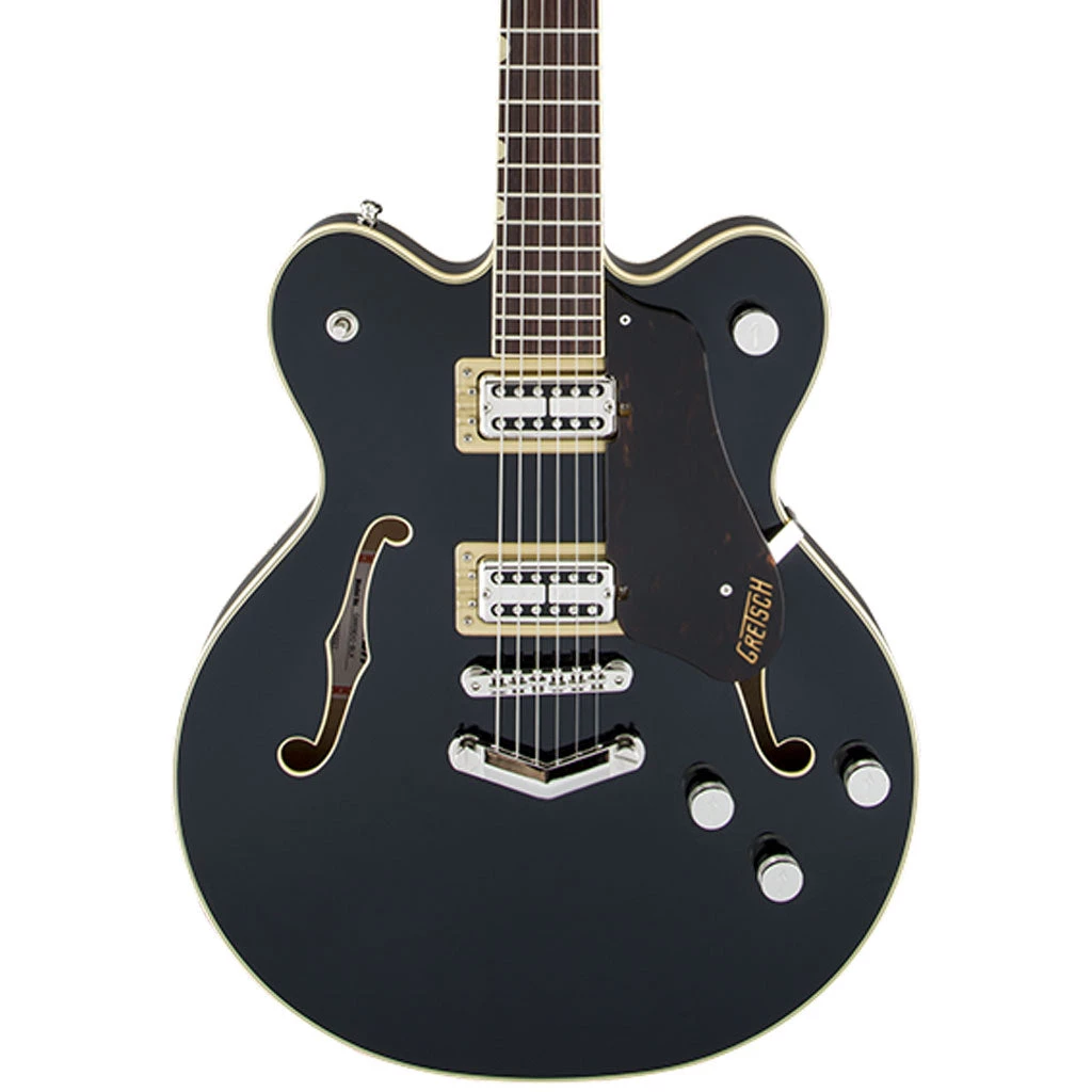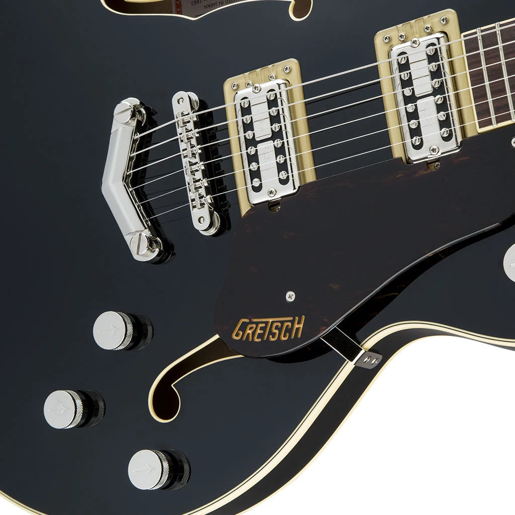 Built to perform, the G6609 Players Edition Broadkaster® Center Block Double-Cut with V-Stoptail features maple body in handsome Black and Dark Cherry Stain finishes. Two new U.S.-made Full’Tron™ pickups deliver full-spectrum sonic range with a growl unlike any other pickup, in addition to classic Gretsch chime, balance and brilliance with a dash of extra-mid concentration for powering through overdriven and distorted passages at full volume. The studded Adjusto-Matic™ bridge and Gretsch V-Stoptail deliver even greater sustain and tonal focus.
