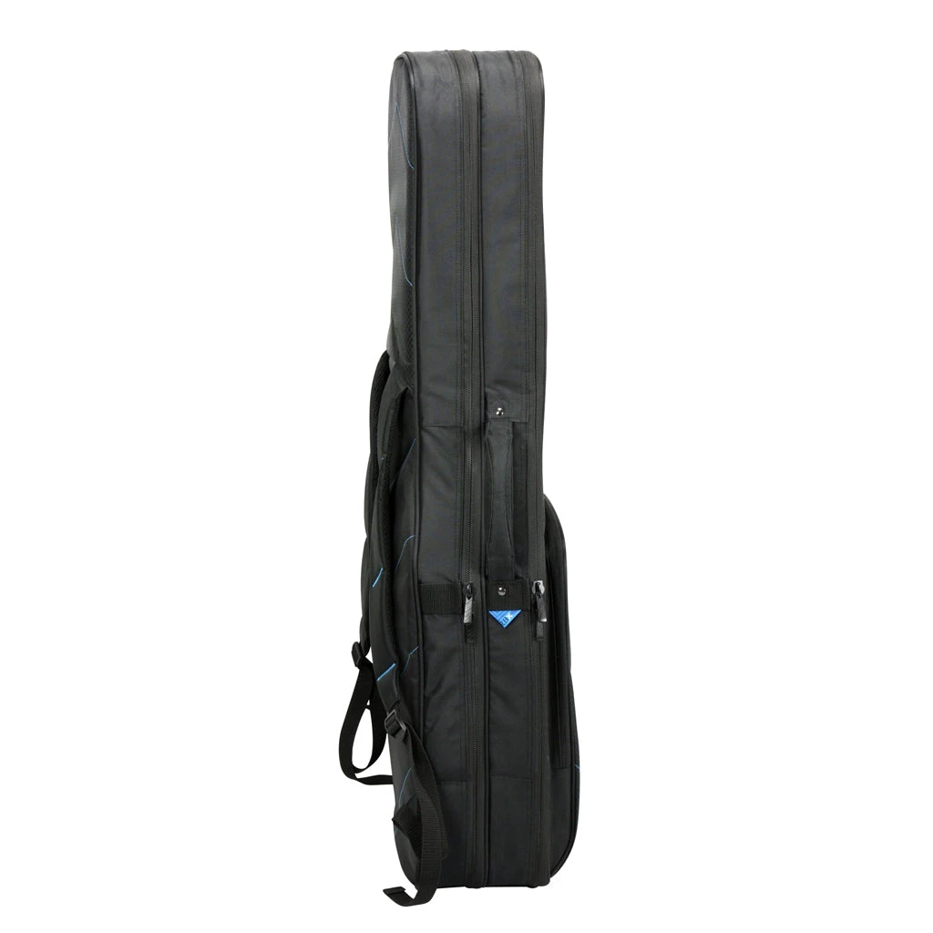 Reunion Blues has been making the world’s best gig bags for almost 40 years, and the new RBX gig bag line represents a fusion of our passion for quality and the desire to make an affordable, lightweight, and protective gig bag perfect for musicians on the go. The essence of this passion is represented in it’s sleek aesthetic design, from the Quilted Chevron exterior to the padded Blue Luster lining. The RBX protection system features a lightweight multi-layer foam surround with strategically placed impact panels, and a dense foam neck cradle and endpin rest that keep the guitar safe and secure. Padded backpack straps, an integrated subway grip, and Reunion Blues signature Zero G handle make getting around town a breeze. A large but low profile pocket includes a cable loop and organizer and provides ample storage without adding bulk. And best of all, the RBX gig bag features Reunion Blues Limited Lifetime Warranty. The Gig Bag, Reinvented.(tm)