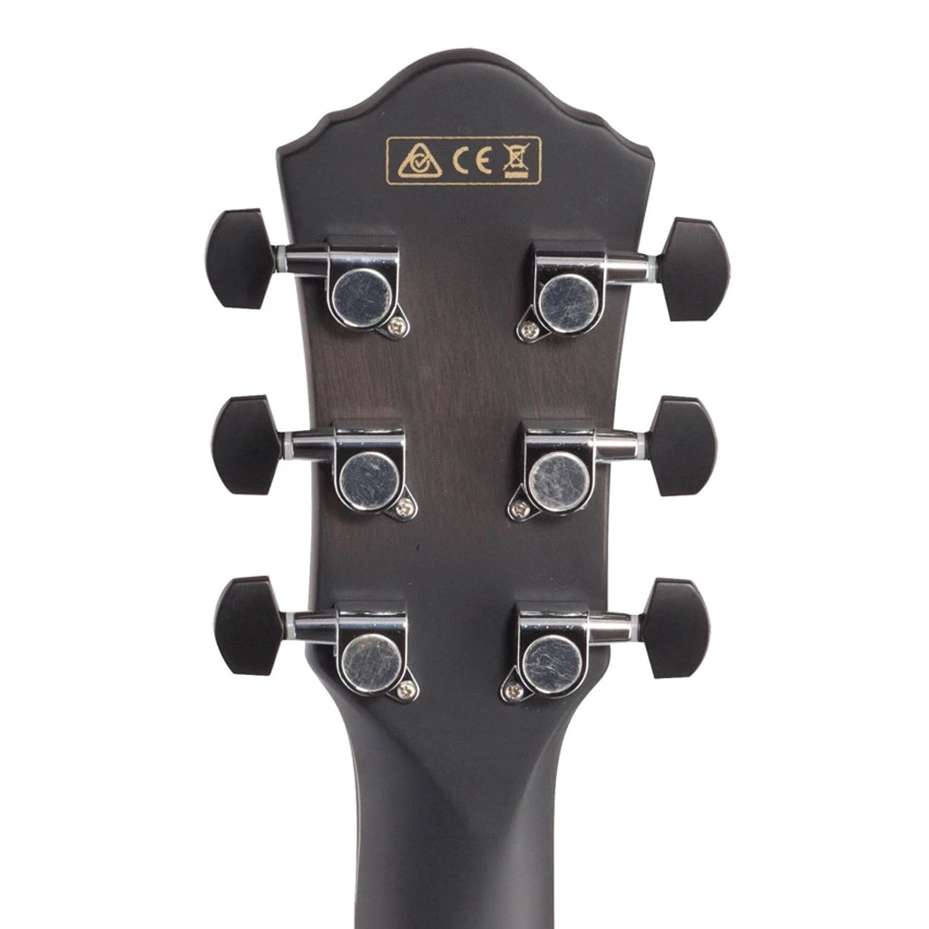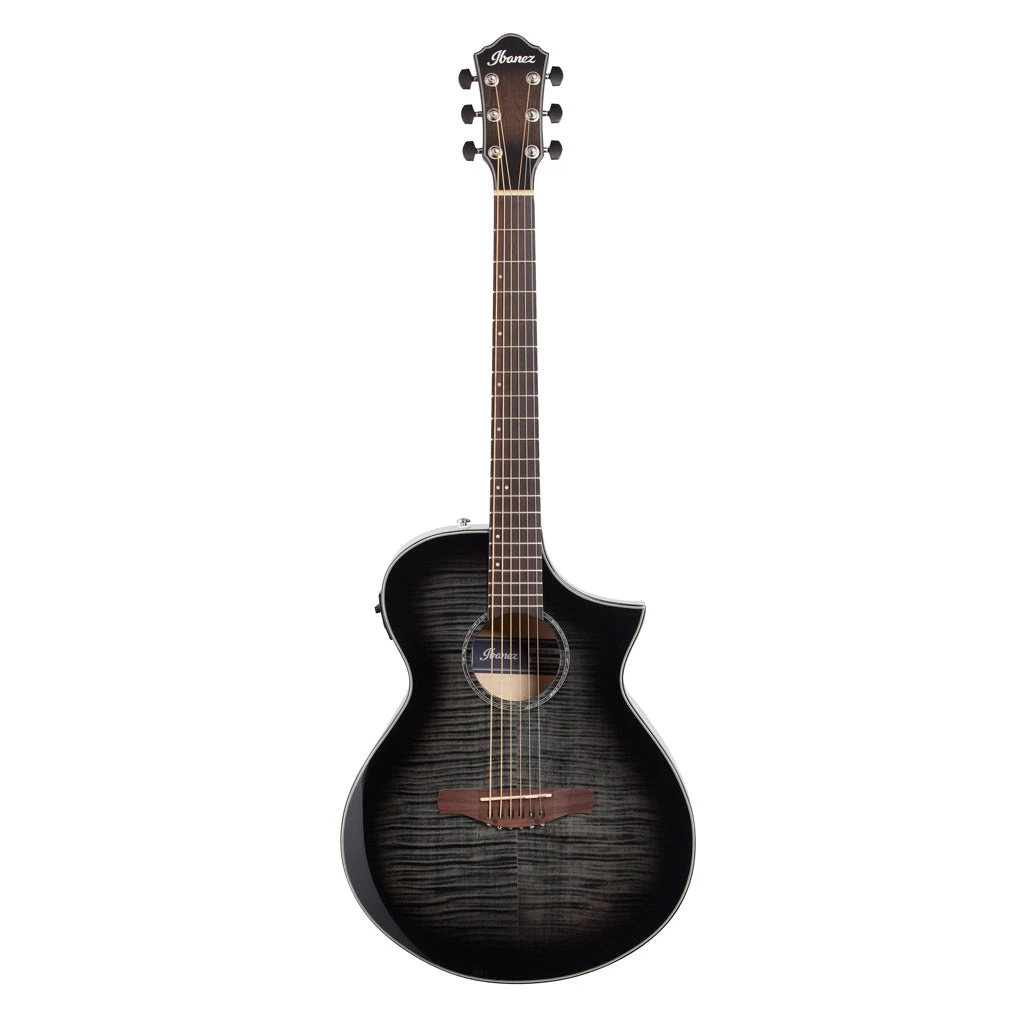 The Ibanez AEWC400 TKS Electric Guitar features include its Flamed Maple Body, with Flamed Maple Back and Sides, Nyatoh Neck and Laurel Fretboard with Off-set white dot Inlay and Ibanez AEQ-SP2 with onboard tuner Preamp in a Transparent Black Sunburst High Gloss finish.