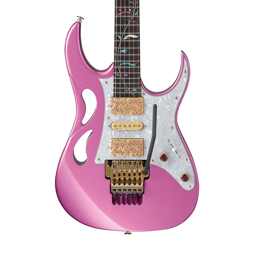 The newly designed PIA Blossom inlay is gorgeous, prominent, and elegantly imparts Steve Vai’s trademark style and artistic vision. Exclusively designed for the PIA, the new Petal Grip offers a balanced, contemporary design aesthetic. It’s also meant to symbolize unity, companionship, and interpersonal bonds. Based on Steve’s latest tonal preferences, DiMarzio® UtoPIAâ„¢ pickups are voiced for smoother highs, more scooped mids, and more pronounced low-end. The pickups incorporate beautiful aesthetics and design elements meant to complement the cosmetic features of the guitar. The Edge tremolo bridge and groundbreaking Lion’s Claw tremolo cavity allow for rapidly increasing and lowering pitch with dramatic range and an intense voice. The tremolo cavity plate is held in place magnetically, allowing for quick removal and reinstallation when changing strings or adjusting the tremolo system.