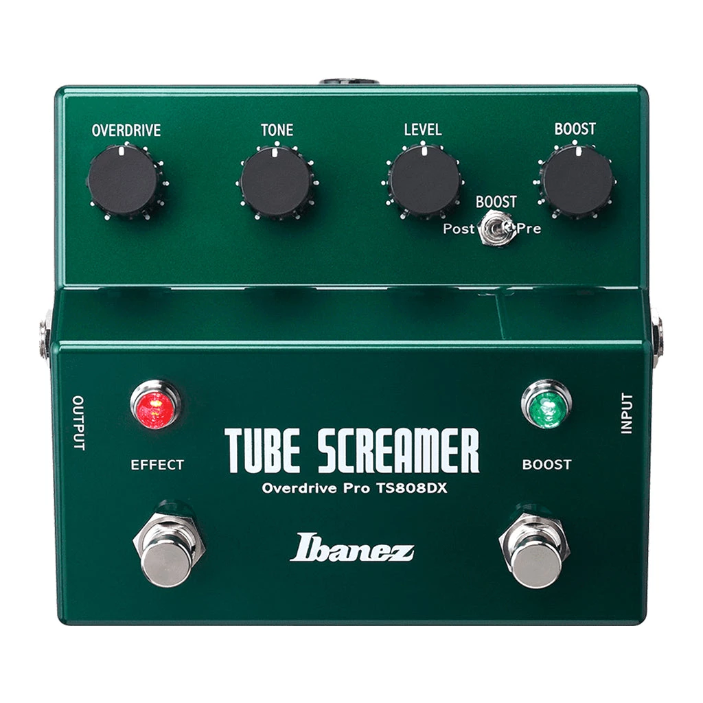 For over 30 years the Ibanez TS808 Tube Screamer has been one of the most popular overdrive pedals in the world. The unmistakable little green stomp box has been a perennial favorite, cherished by rocks most celebrated guitarists for it’s warm, creamy tone and unequivocal responsiveness. Now Ibanez has expanded the palette of “The Screamer” with the new TS808DX.