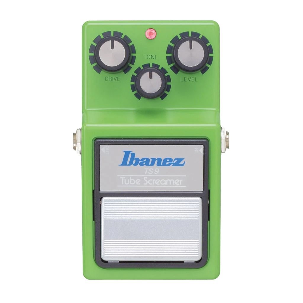 The Ibanez TS9 Tube Screamer is a reissue that’s just like the original in so many ways. Same housing, same famous seasick-green paint, and the same crankin’ overdrive that made the original one of the all-time classic pedals. Guitar Player called it the best. Plug it in. Crank it up. You’ll hear what all the fuss is about. Tone, drive, and level controls. Drive, Tone and Level controls Power Supply: One 9 volt battery (006P) or external AC adapter (Use only DC 9V (Negative center pin))