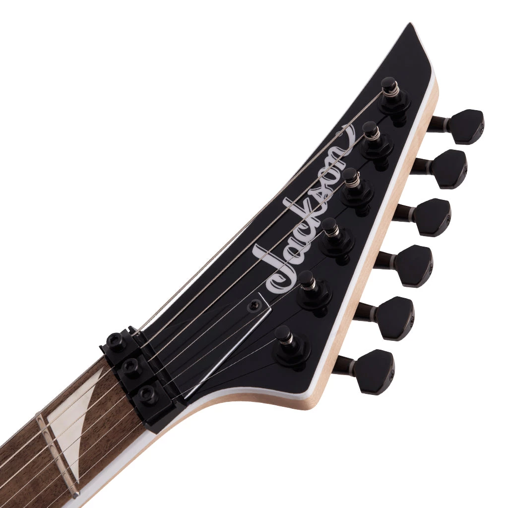 Stunning in sound and style, in classic Gloss Black finish with black hardware and a reverse Jackson pointed 6-in-line black headstock.