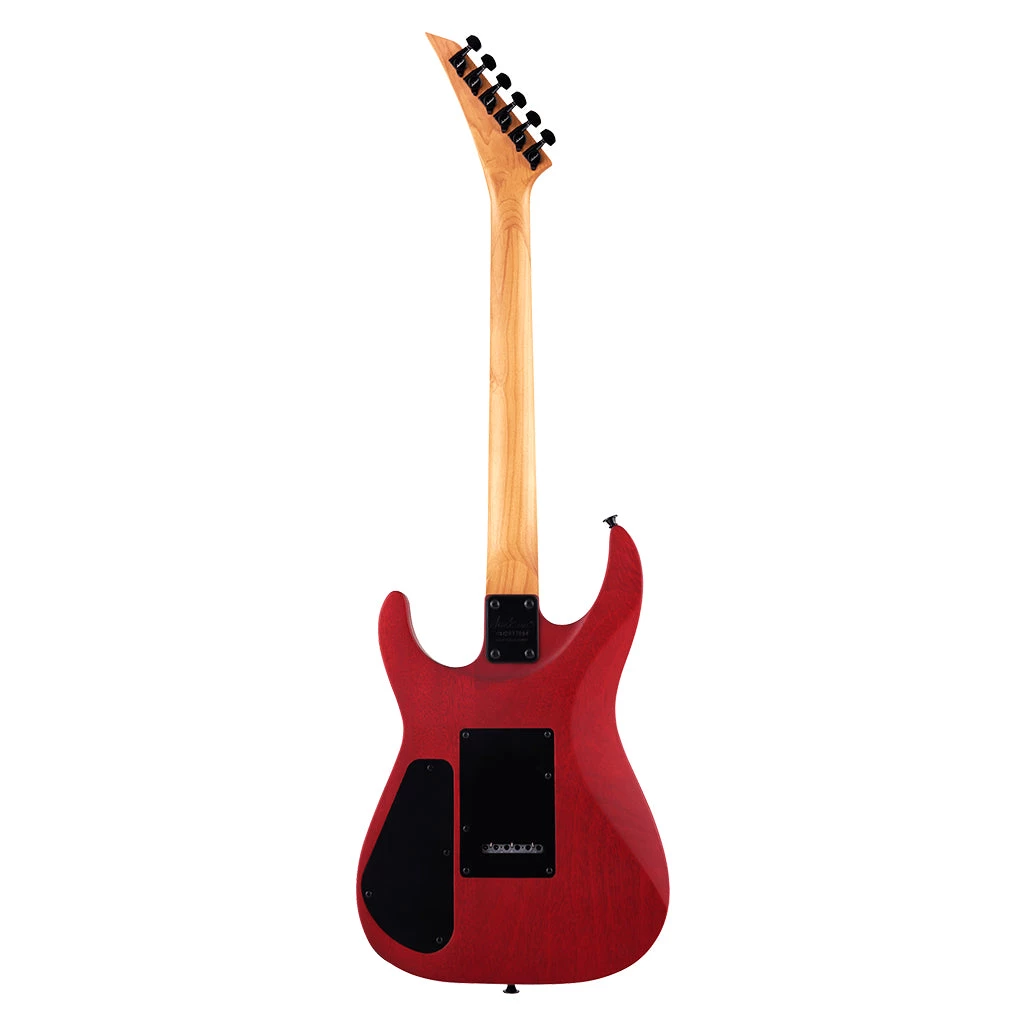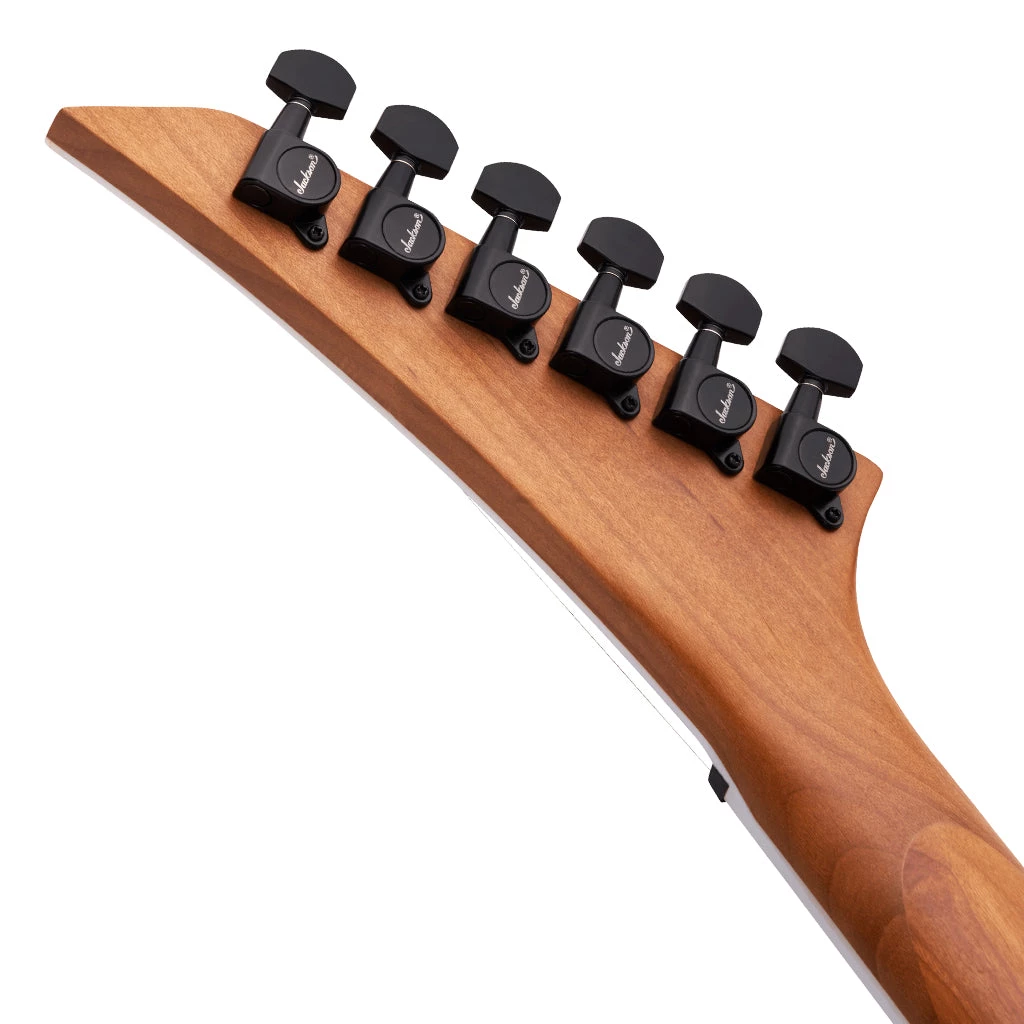 Other features include dual Jackson high-output humbucking pickups with ceramic magnets and three-way pickup blade switching, single volume and tone controls, synchronized fulcrum tremolo bridge, standard strap buttons and die-cast tuners.