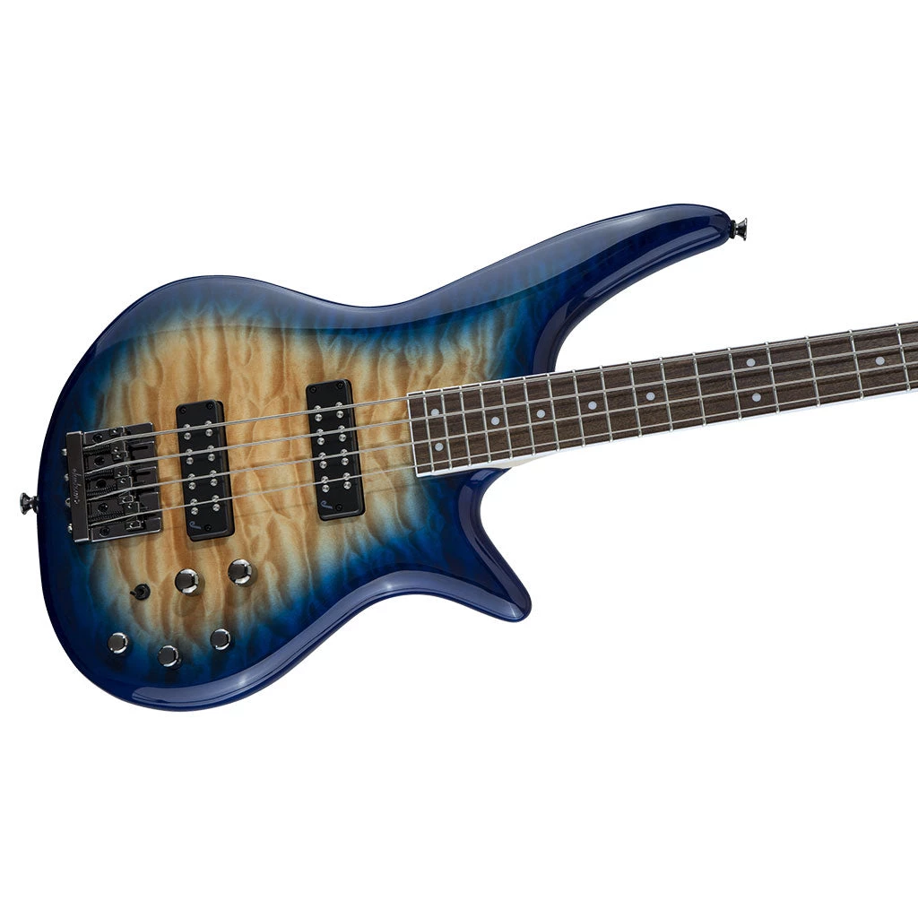 Offering more boom for your buck, the 4-string, 34″-scale Spectra Bass JS3Q comes in a vibrant Amber Blue Burst or Dark Sunburst finish with black nickel hardware and a unique Jackson 2×2 headstock with an understated J logo.