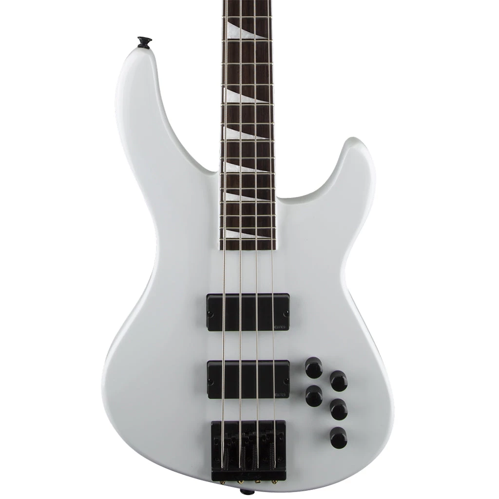 The Pro Series Signature Chris Beattie Concert™ Bass features an alder body, through-body maple neck, 12″-16″ compound radius dark rosewood fingerboard with pearloid sharkfin inlays, blistering EMG HZ pickups with an active three-band EQ and a Jackson HiMass™ bridge.