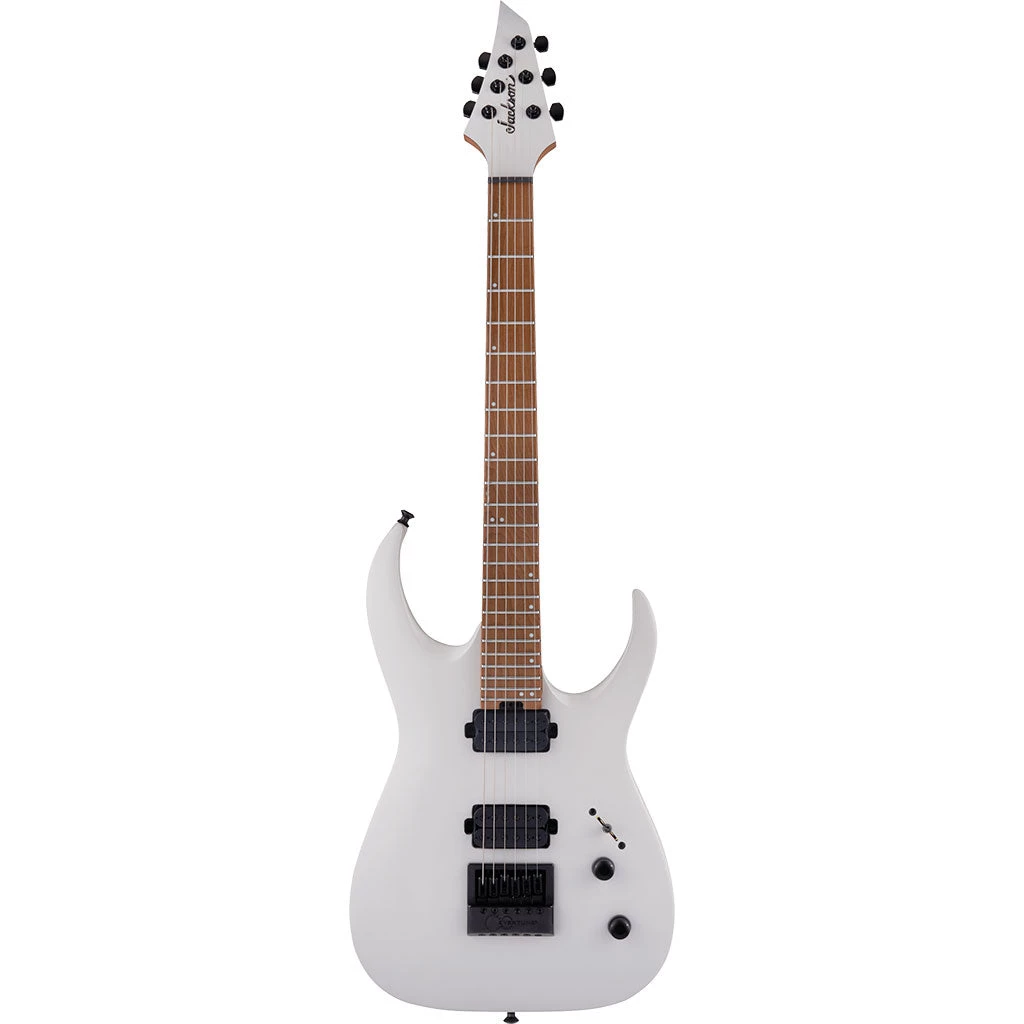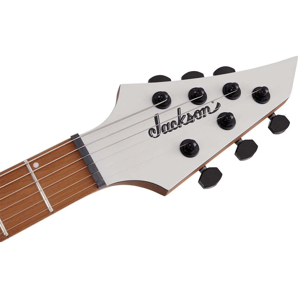 This 6-string Juggernaut is wrapped in a statement-making Chalk Gray finish with a color matched reverse Jackson 3×3 AT-1 headstock and black hardware.