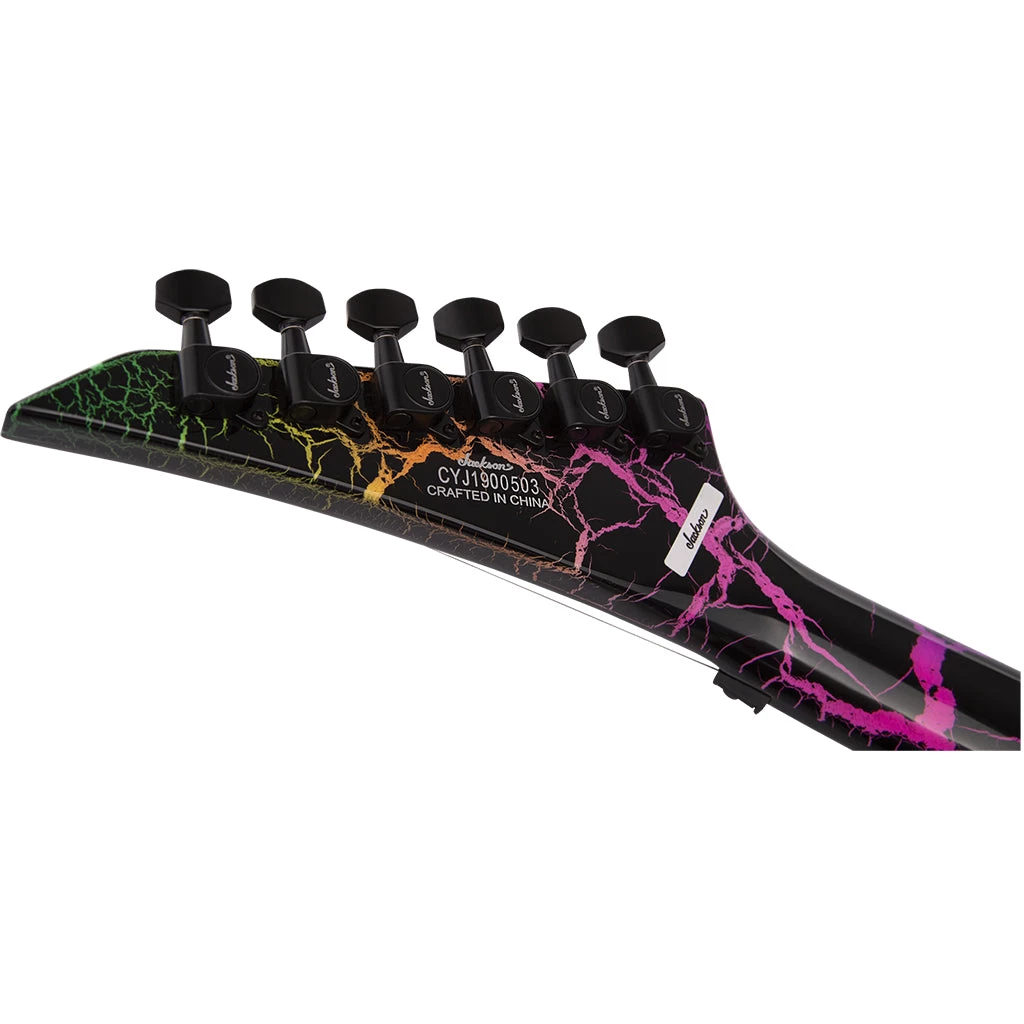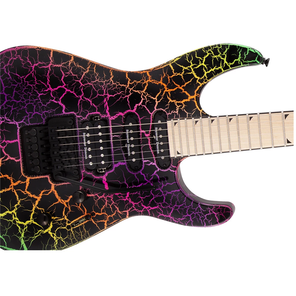 Built to steal the stage with stunning looks and spectacular tone, the Pro SL3M is available in a prismatic Rainbow Crackle finish with matching pointed 6-in-line headstock, black neck and headstock binding and black hardware.