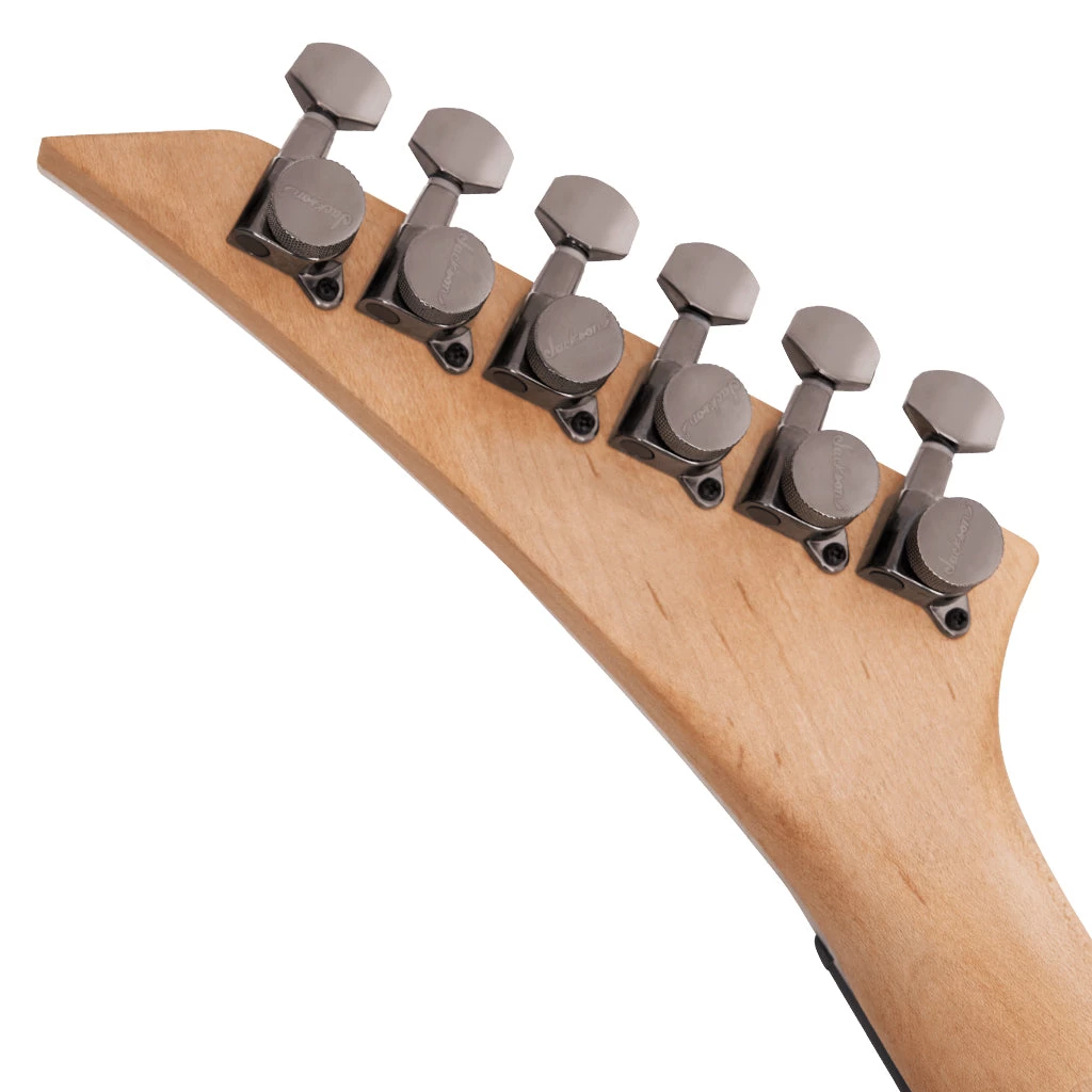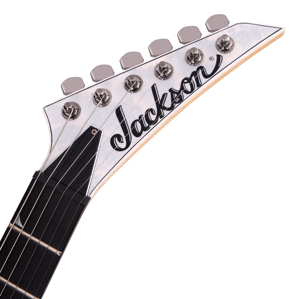 Jackson has a history of adding striking style to its high-performance instruments, and this axe is no exception. Its mystical Unicorn White finish features a matching Jackson pointed 6-in-line headstock, 2-ply black and celluloid pearl binding, pearloid piranha tooth inlays and black nickel hardware.