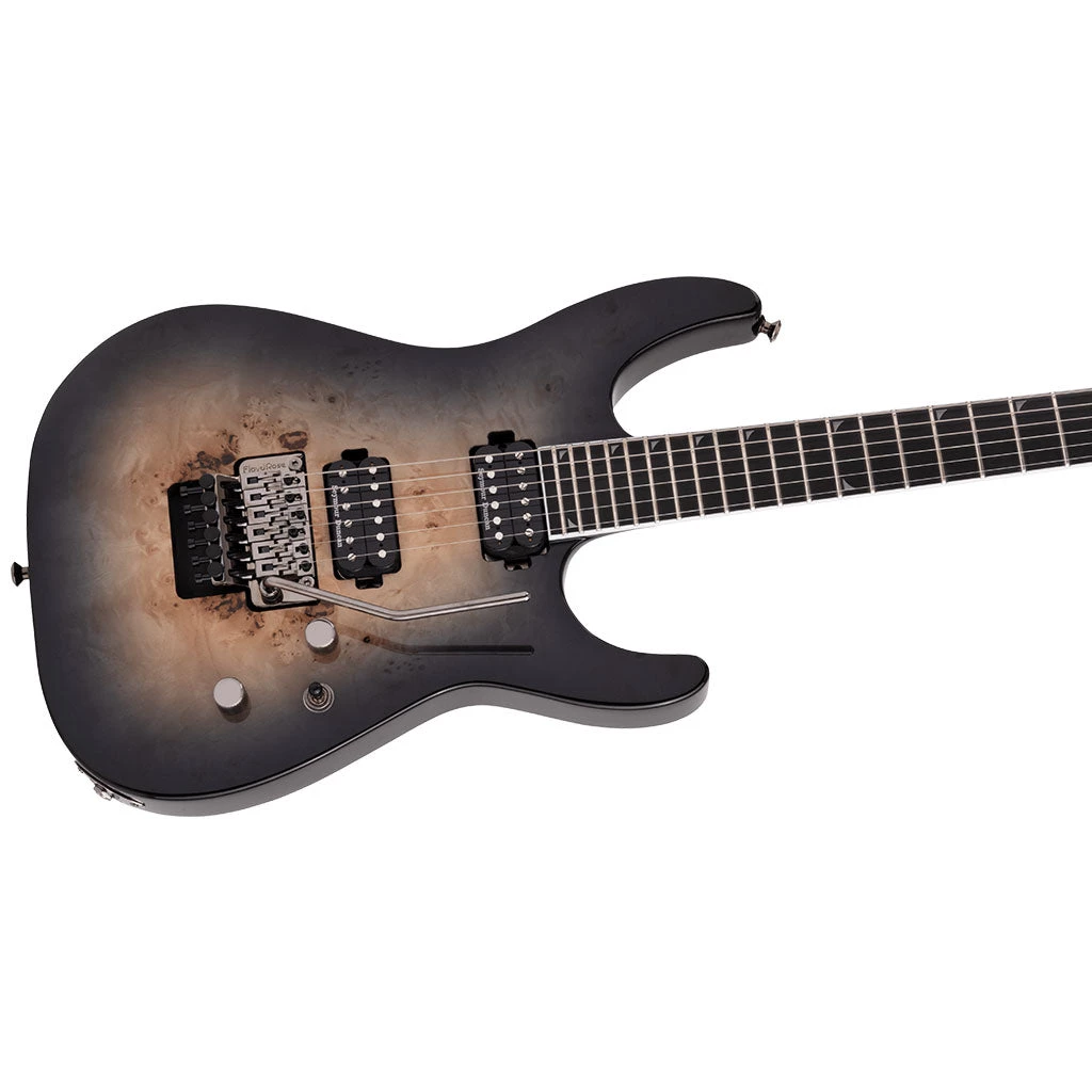 Jackson has a history of adding striking style to its high-performance instruments, and this axe is no exception. Available in Transparent Black Burst, the SL2P MAH is completed with alumiloid piranha inlays, Dunlop® strap locks, sealed die-cast tuners, Jackson pointed 6-in-line matching headstock and black or black nickel hardware.