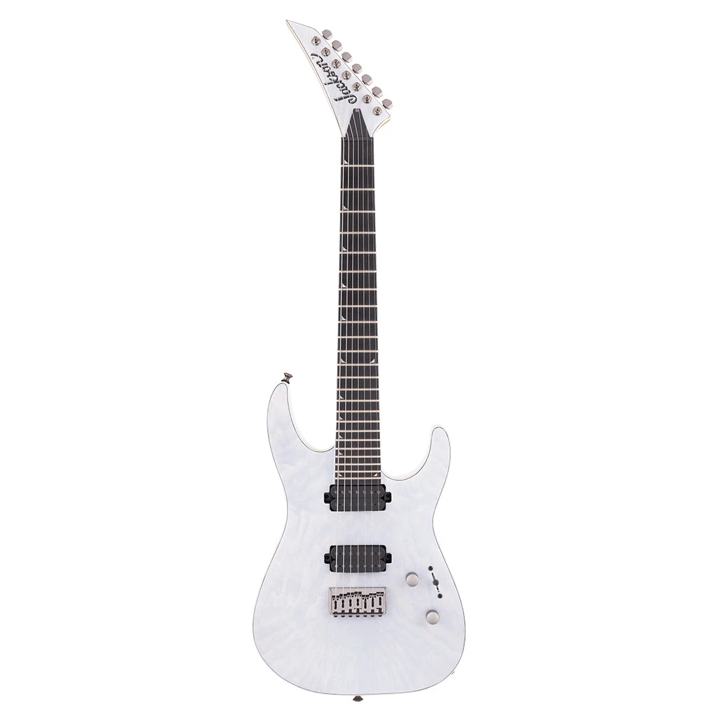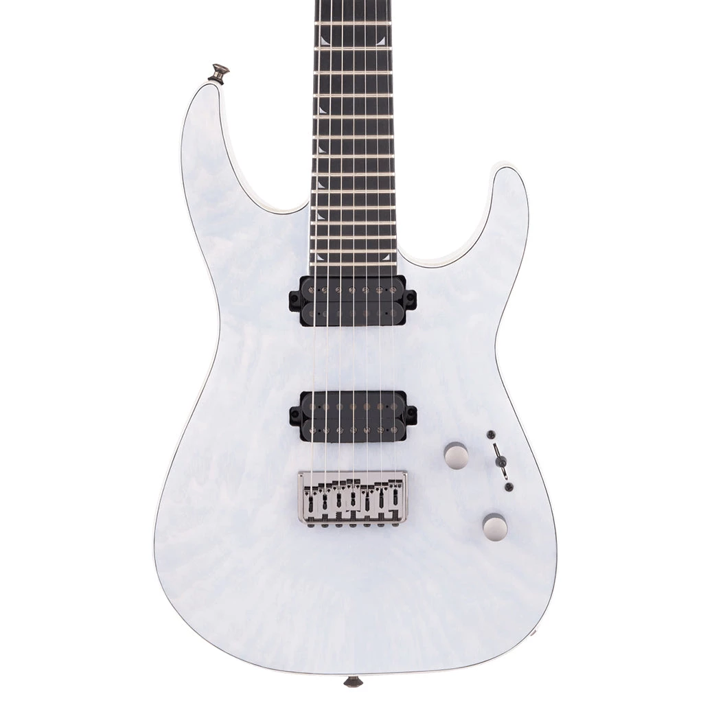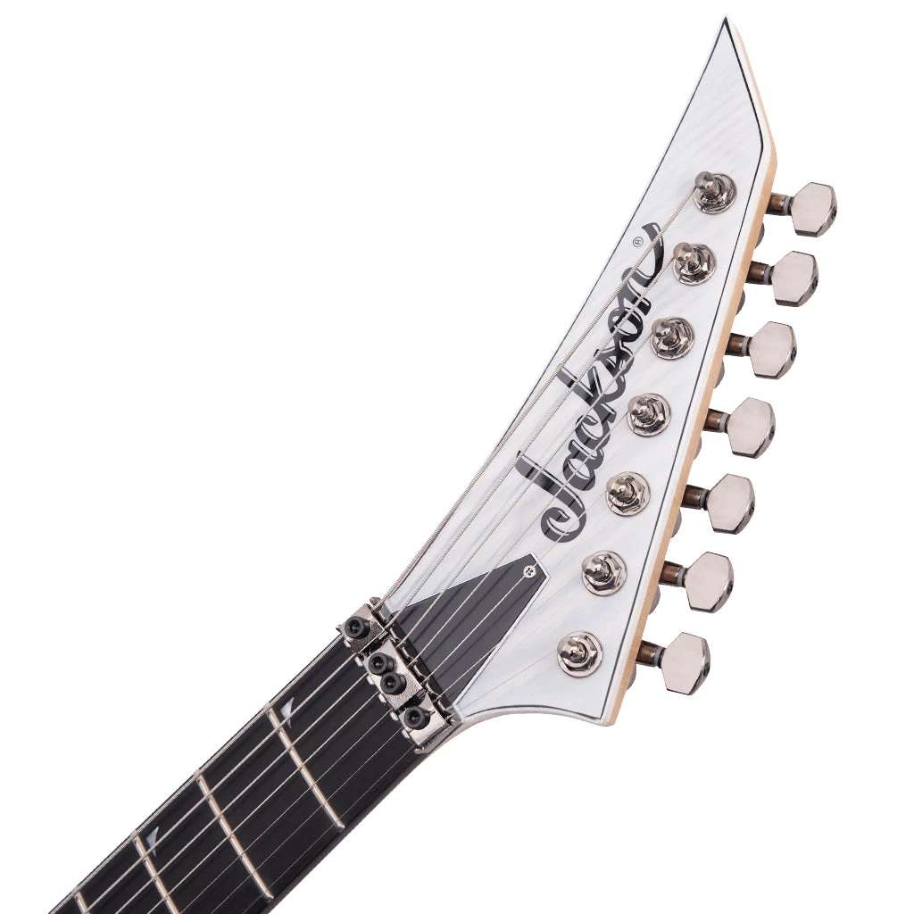 Jackson has a history of adding striking style to its high-performance instruments, and the Pro SL7A HT is no exception. A magical Unicorn White finish with matching reverse Jackson pointed 7-in-line headstock, 2-ply black/celluloid pearl binding and black nickel hardware combine for a rare and remarkable instrument.