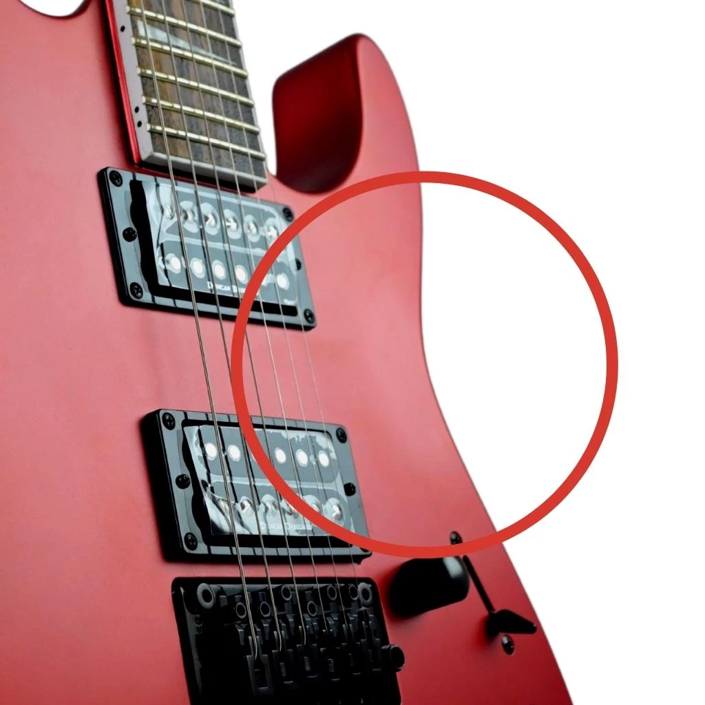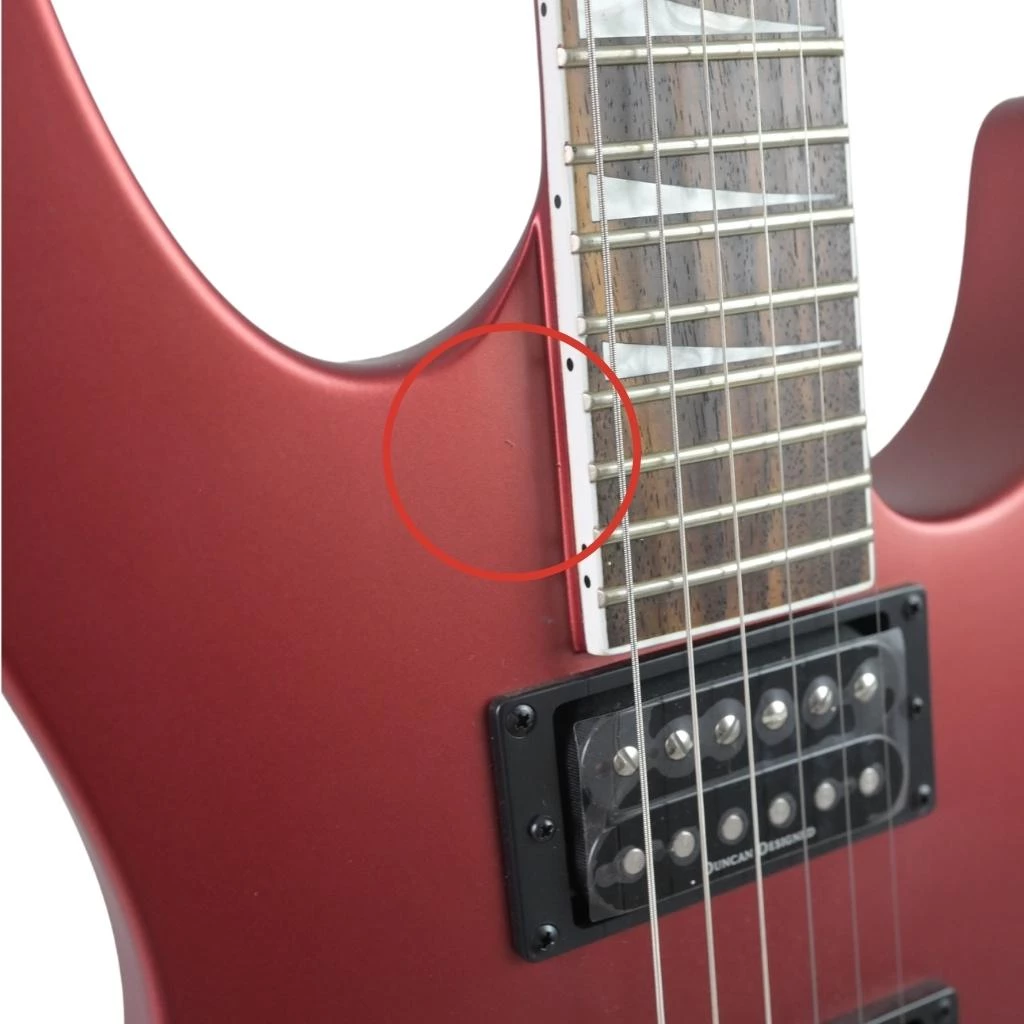 Sleek and deadly with our signature pointed 6-in-line black headstock, and Satin Red Pearl finish.