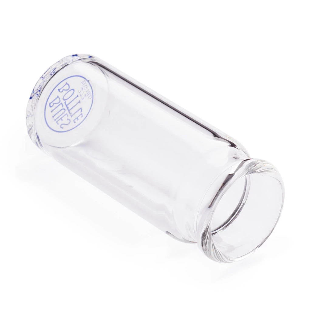 This glass medicine bottle slide provides a crisp, bright tone, featuring a closed, weighted end for balance, regular wall thickness, and a medium diameter.