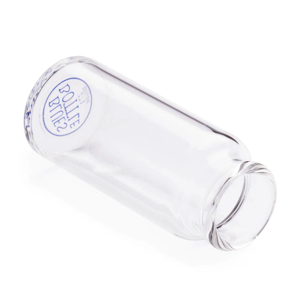 This glass medicine bottle slide provides a crisp, bright tone, featuring a closed, weighted end for balance, regular wall thickness, and a small diameter.