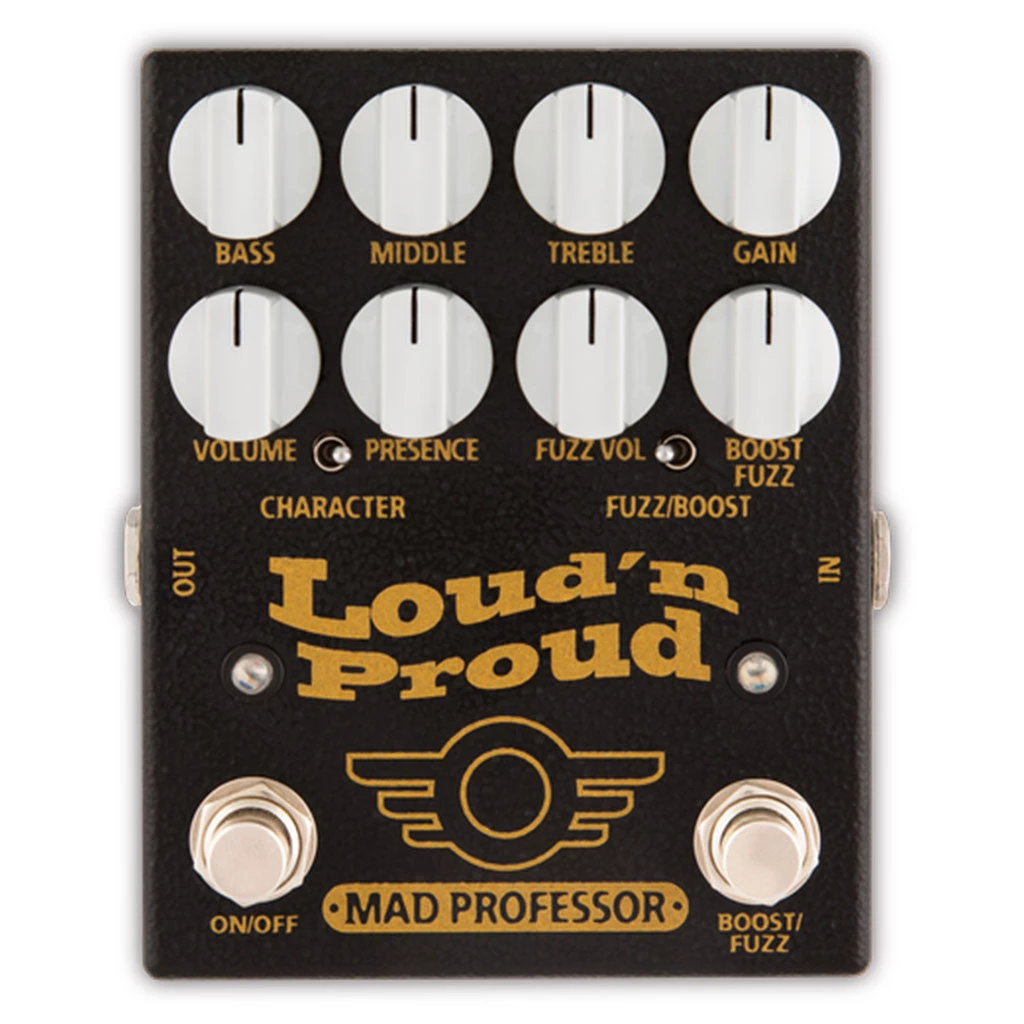 Mad Professor Loud´n Proud is a vintage 4-input Marshall in a box. It’s a compact pedal with a complete amp signal path replicated inside. Not only the preamp but also the power amp containing phase inverter, push-pull stage, and output transformer simulation. This internal structure makes the pedal not only sound but also behave like a real amp.