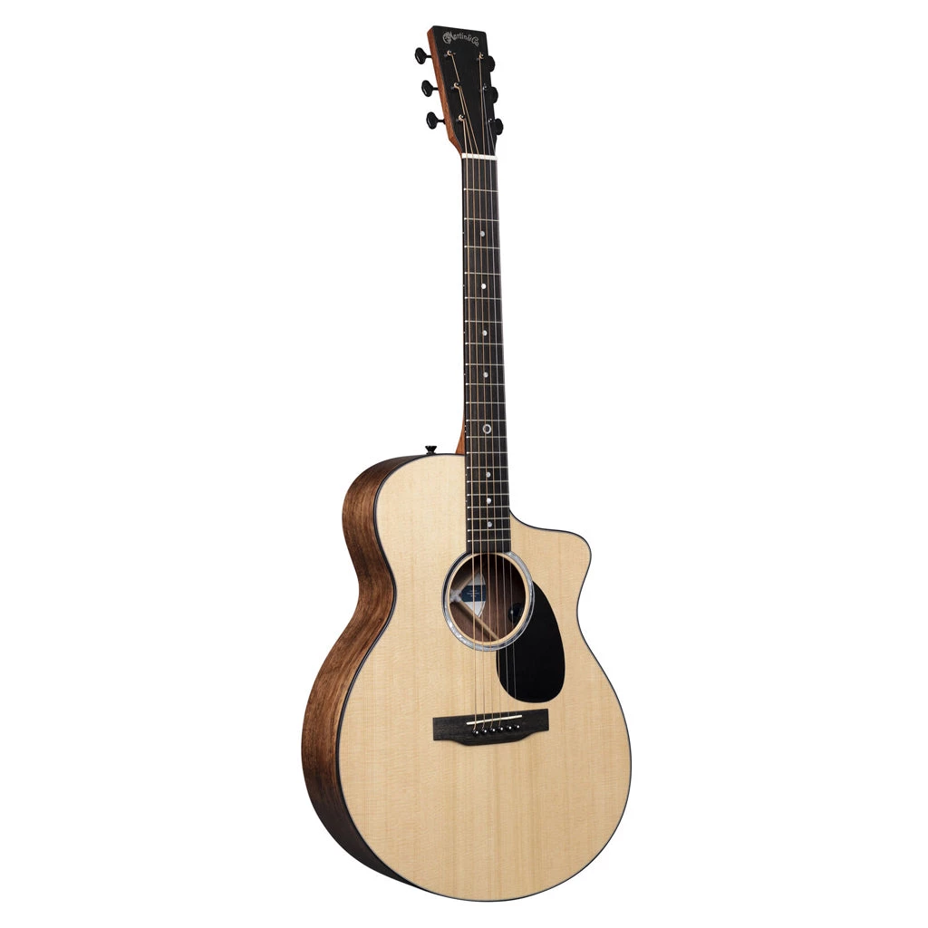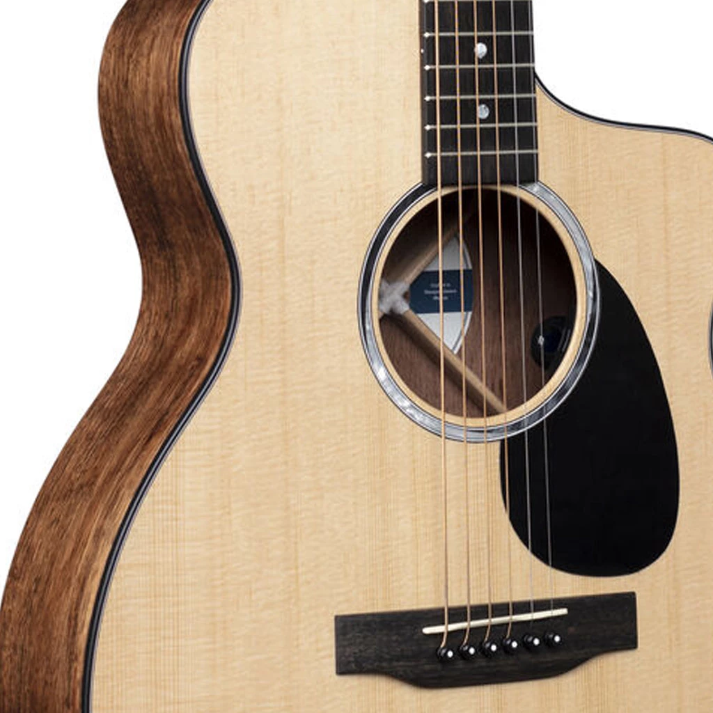 It’s time to rethink what an acoustic-electric guitar can do. Do you want to play leads all the way up the neck? Play longer? Play louder? Now you can with this super-comfortable, easy-to-play acoustic-electric from Martin. The SC-10E, with its patented Sure Align® neck system, gives you full access to all frets so you can comfortably reach those high notes. It’s also equipped with a low-profile velocity neck barrel that ergonomically accommodates your hand as you move up the neck, giving you the comfort and playability of an electric. The affordably priced SC-10E includes a satin finished sitka spruce top and stunning koa fine veneer back and sides. The design motif features a black and white aperture rosette inlay that is complimented by an ebony headplate, fingerboard, and bridge and black tuners and knobs.