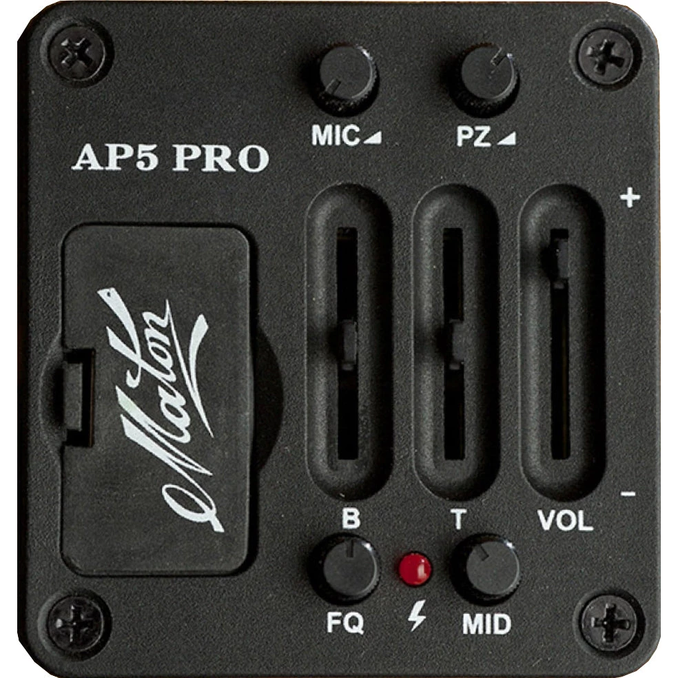 The AP5 PRO now features separate Microphone and Piezo input controls allow for blending of both microphone and piezo levels prior to sending the actively combined signals through to the master volume. Highly selective cardioid microphone system allows for much greater microphone level before feedback in live environments. This newly upgraded microphone is directly mounted to the preamp casing via an adjustable arm, which permits easy final tweaking of microphone position to suit the individual artist’s style.
