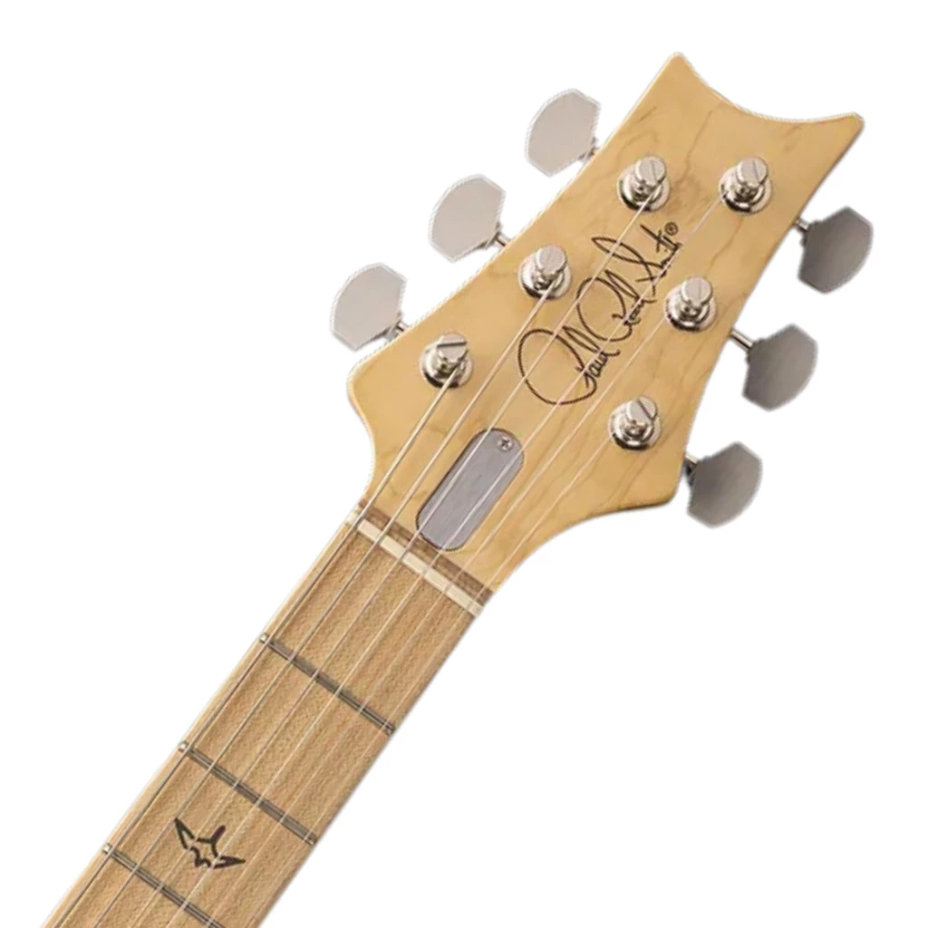 Some of the more distinctive specifications include, the headstock shape, tuners, bridge, pickups, and neck and fretboard options. The headstock shape is based on PRS’s trademark design, but inverted both to accommodate Mayer’s playing style and also to keep a consistent length of string behind the nut, which makes staying in tune easier. The tuners are a traditional vintage-style, closed-back tuner, but with PRS’s locking design. The steel tremolo takes the patented PRS design and incorporates Gen III knife-edge screws. Setup flush to the body in the neutral position so that the tremolo bridge only goes down in pitch, the bridge’s increased contact with the body allows the guitar itself to be acoustically louder, which in turn improves the signal to noise ratio of the single-coil pickups. The 635JM single-coil pickups are very round and full, with a musical high end that is never “ice-picky” or brash.