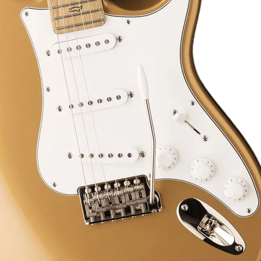 The Silver Sky comes with the option of a rosewood or maple fretboard. The maple fretboard option comes with the original 635JM neck shape, while the rosewood fretboard option has been subtly modified in the shoulders to feel more “rounded” in your hand. Both neck shapes were designed by researching vintage instruments and Mayer test-driving guitars on stage to find what felt right. The fretboard radius on both options is 7.25”.