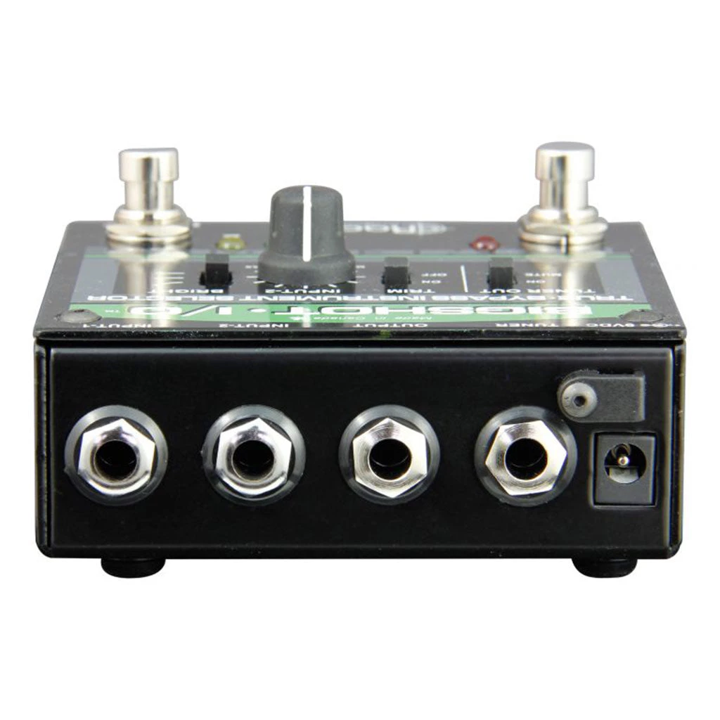 The BigShot i/o allows you to switch between instruments on stage without pops through your amp or the need to adjust levels, while featuring 100% true-bypass for the most demanding purist. Input-2 is equipped with a volume control that lets you reduce the input sensitivity of the louder instrument so that the levels are matched when played through your amplifier. When passive instruments are used, a unique three-position Bright switch lets you compensate for instruments that lack shine in the high frequencies. The BigShot i/o is also equipped with a separate tuner output; with a simple foot stomp, the sound going to the amp is muted and diverted to the tuner for quiet on-stage adjustments.