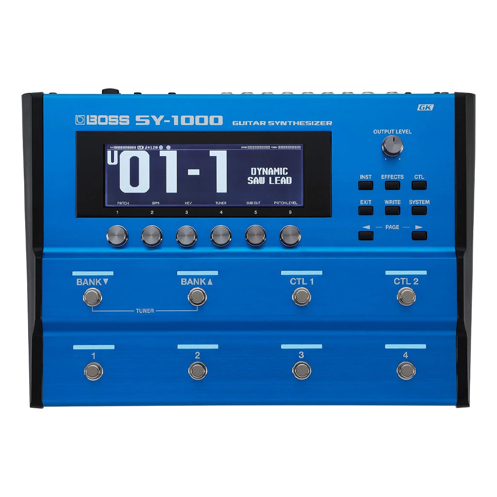 SOAR INTO THE INFINITE The SY-1000 is a breakthrough creation machine that transforms your guitar or bass rig with limitless sound design options. This powerhouse music tool opens a bold new chapter in the legacy of BOSS guitar synth innovation, fusing decades of R&D with our latest software and hardware advancements. Backed by a cutting-edge sound engine, high-octane DSP, and evolved GK technology, the SY-1000 delivers the finest performance and most organic playing experience to date. Three simultaneous instruments and premium processing let you craft any sound you can imagine—intense analog-style leads, warm pads, moving synth textures, modeled electric and acoustic tones, or all at once. And with freely configurable footswitches, outputs, and external controls, you can maximize the hardware for any workflow. Sonically vast and deeply expressive, the SY-1000 is an infinite well of inspiration, energizing your musical vision with endless possibilities.