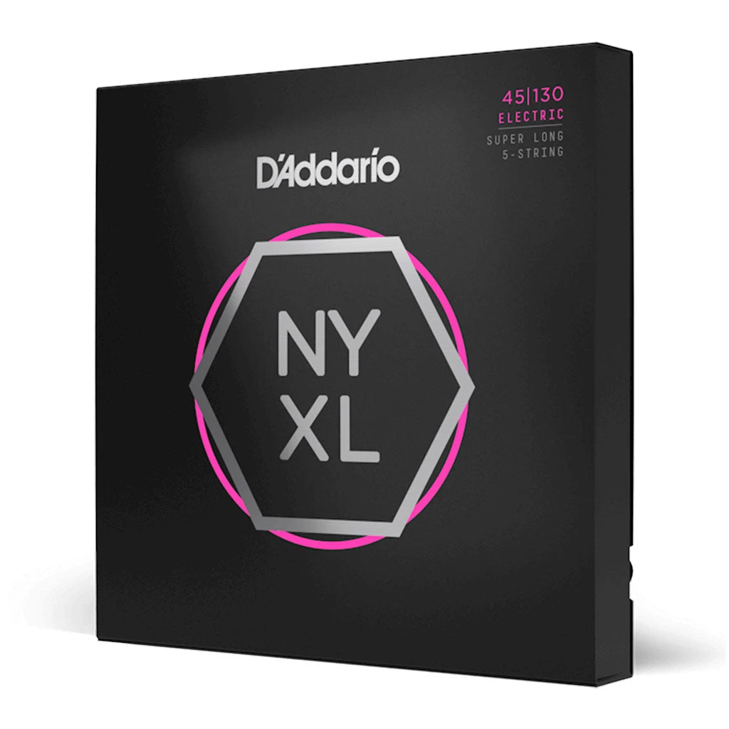NYXL bass guitar strings thump harder, bend farther and sound thicker than any bass string you’ve played before. As our premium uncoated bass string, NYXL bass strings provide higher break strength, enhanced tuning stability, and accentuated harmonics where it counts. Using a NY Steel core, Fusion Twist technology, and premium nickel-plated steel wrap wire, with a reengineered core-to-wrap ratio, NYXL bass guitar strings deliver extra versatility, familiar feel, and a boosted tone that’ll expand the scope of your low-end. Made for 5-string basses, this 45-130 Regular Light Super Long Scale set provides players with an extremely versatile, super long scale string, in our most popular string gauge.