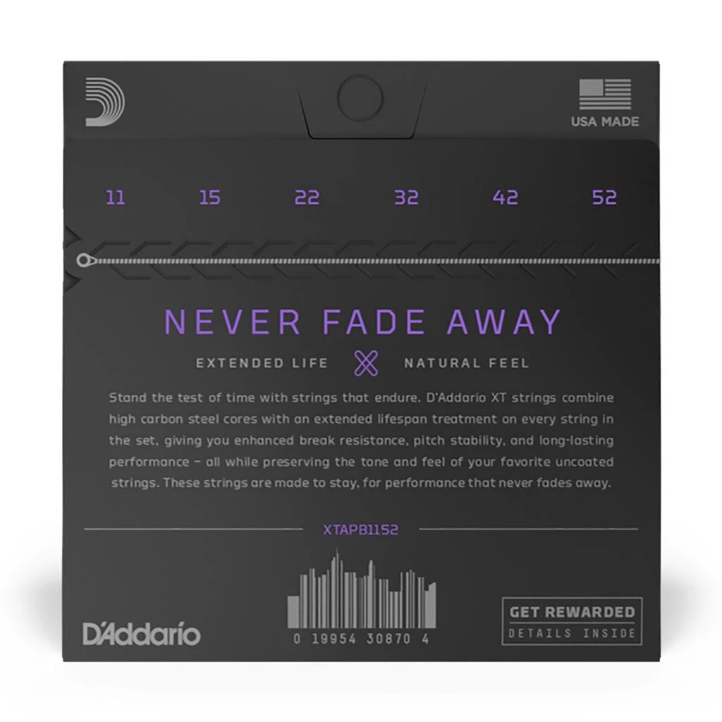 D’Addario XT Acoustic Phosphor Bronze strings combine our most popular acoustic alloy with an advanced corrosion resistance treatment on every string in the set, preserving the natural tone and feel of uncoated strings. Available for 6 and 12-string acoustic guitar ranging from extra-light to medium gauges.