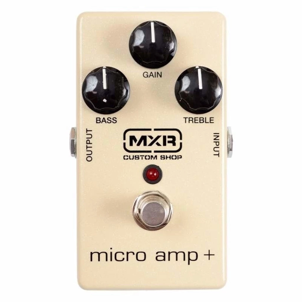 For more than 20 years, the MXR Micro Amp has been a staple among the world’s top artists because of its ability to boost and sweeten up your guitar or bass tone and drive the front of your amp. The Micro Amp+ builds on that classic pedal with EQ controls and other upgrades that take this powerful boost box to the next level. With its Gain knob, the Micro Amp+ allows you to dial up just as much gain as the original—up to +26dB—but with added EQ controls, you can now finely sculpt your boosted signal. For the classic Micro Amp sound, set the Bass and Treble controls to noon. Additionally, the Micro Amp+ now comes equipped with low-noise op amps—so you don’t get any extra noise at super high levels—and true bypass switching. With the sturdy housing and durable components that MXR is known for, this pedal is ready for the road.