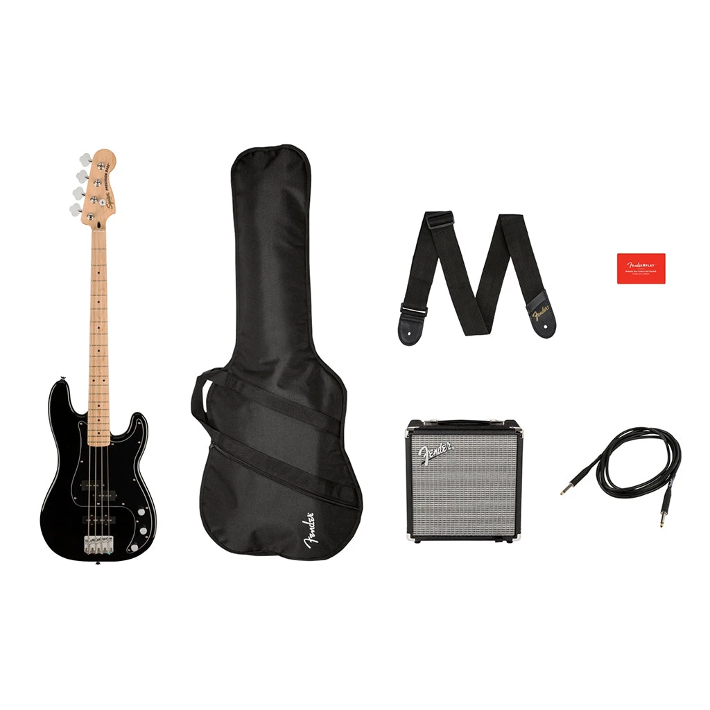 - Includes: free 3-month subscription to Fender Play, Rumble 15 bass amplifier, padded gig bag, 10′ instrument cable and instrument strap
