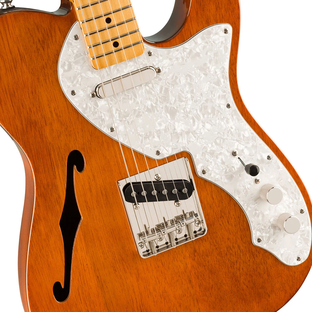The Classic Vibe ‘60s Telecaster® Thinline is a nod to the early semi-hollow Tele models from the 1960s, creating incredible tone courtesy of the Fender-Designed alnico single-coil pickups. Player-friendly features include a slim, comfortable “C”-shaped neck profile with an easy-playing 9.5”-radius fingerboard and narrow-tall frets, as well as a vintage-style Telecaster bridge with a string-through-body design and individual steel saddles for precise adjustment. This throwback Squier model also features 1960s-inspired headstock markings, rich-looking nickel-plated hardware and a slick vintage-tint gloss neck finish for an old-school vibe.