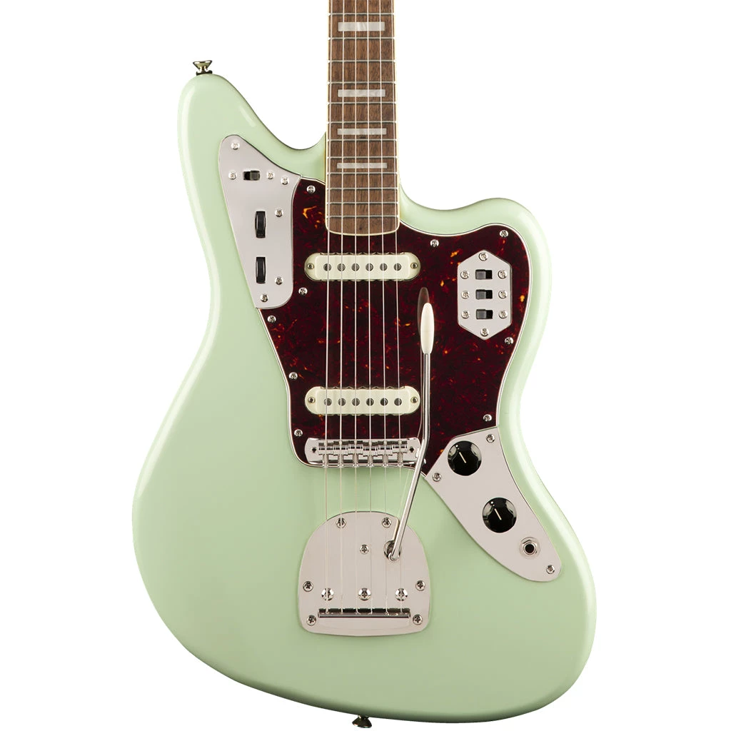 The Classic Vibe ‘70s Jaguar® turns up the volume on retro style and produces incredible tone courtesy of its dual Fender-Designed alnico single coil pickups. Small hands will appreciate the short 24” scale length and slim, comfortable “C”-shaped neck profile with an easy-playing 9.5”-radius fingerboard and narrow-tall frets. This Jaguar is faithful to the original with a vintage-style tremolo system for expressive string bending effects and floating bridge with barrel saddles for solid string stability.