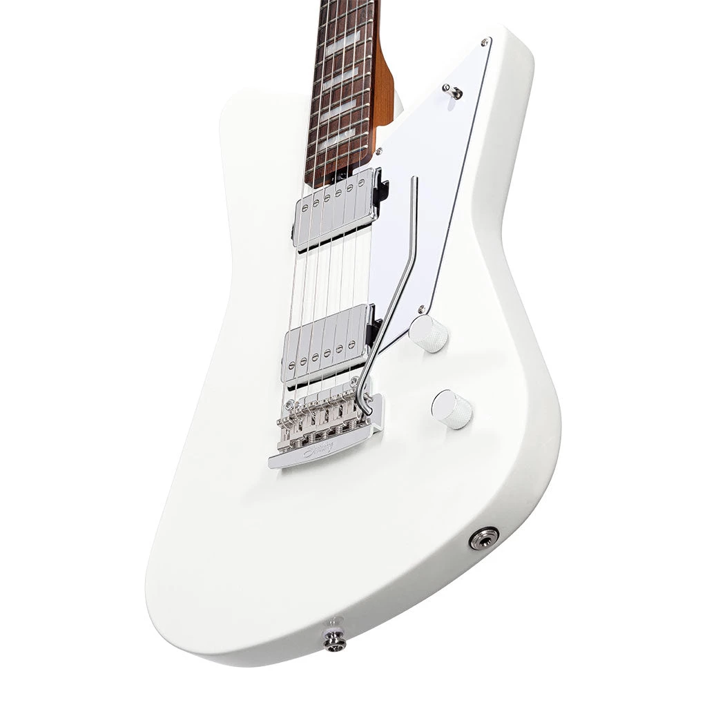 Designed in collaboration with Omar RodrĂguez-LĂłpez, the Mariposa is a true stunner. The guitar’s unique body shape is eye-catching, but there is more than meets the eye with the Mariposa. Featuring a roasted neck, locking tuners, 3-way switching, and two humbucking pickups controlled by separate volume knobs, this guitar has endless tonal options. Available in Dorado Green and Imperial White.